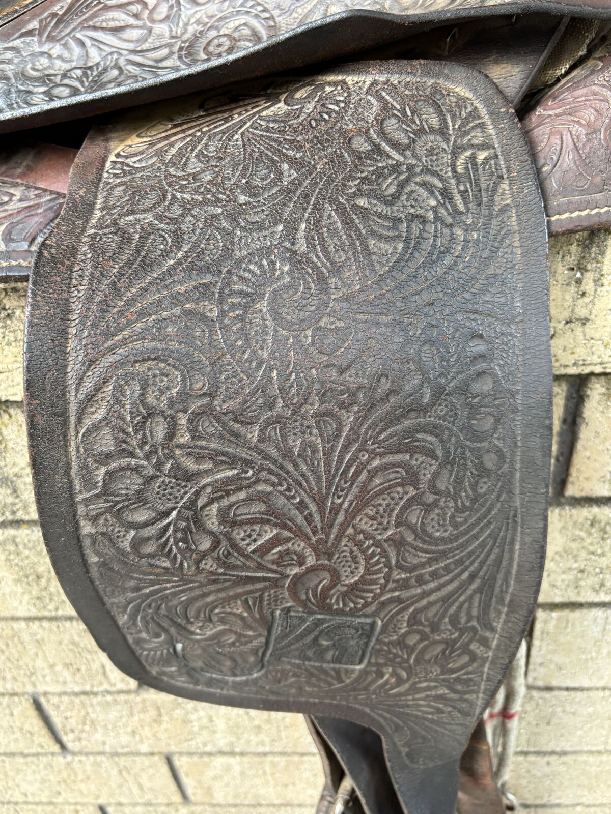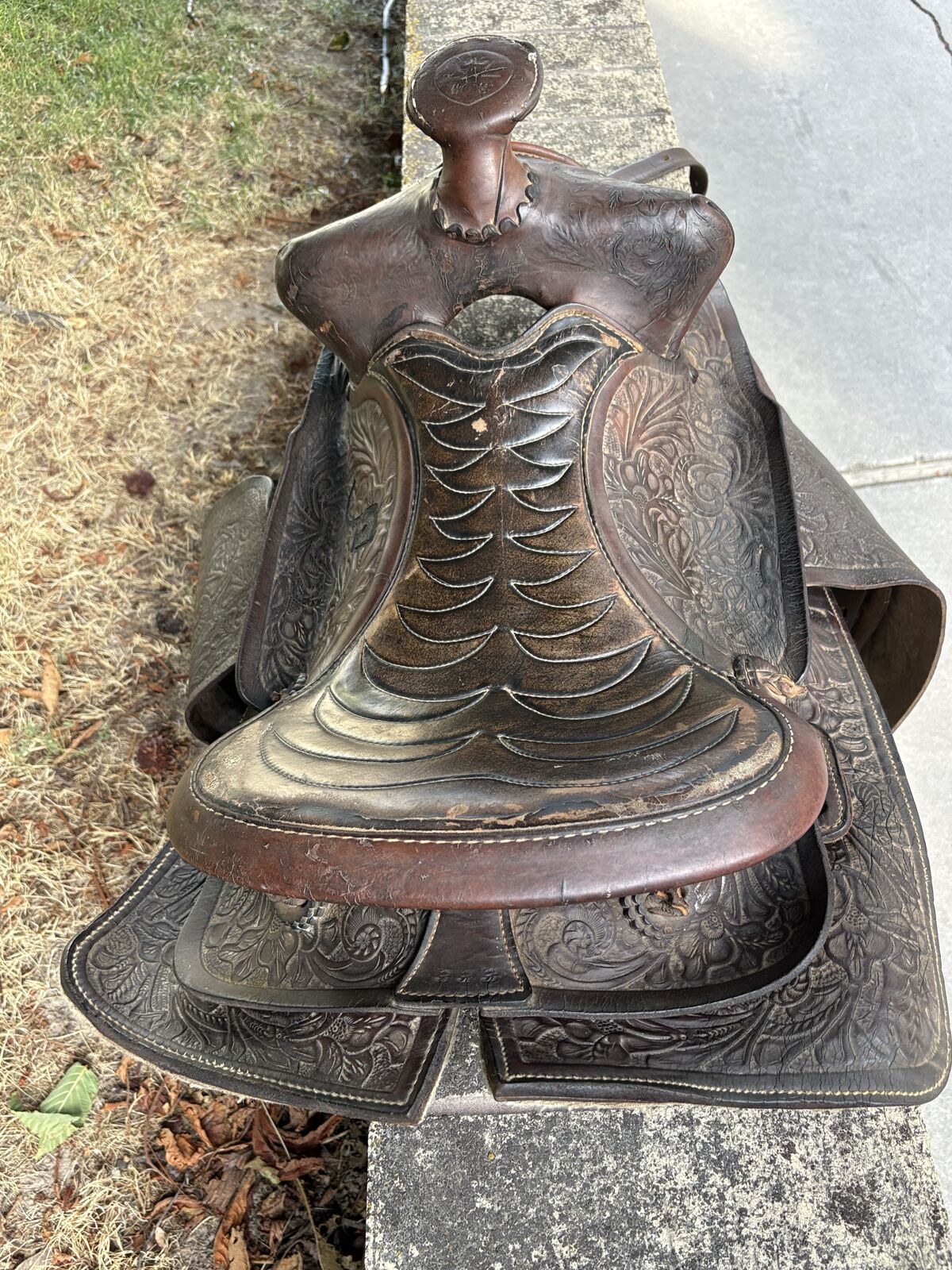 VenmoBig Horn tooled leather western saddle.