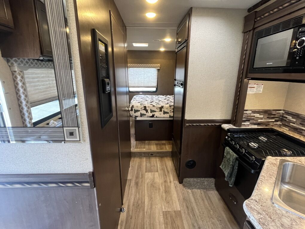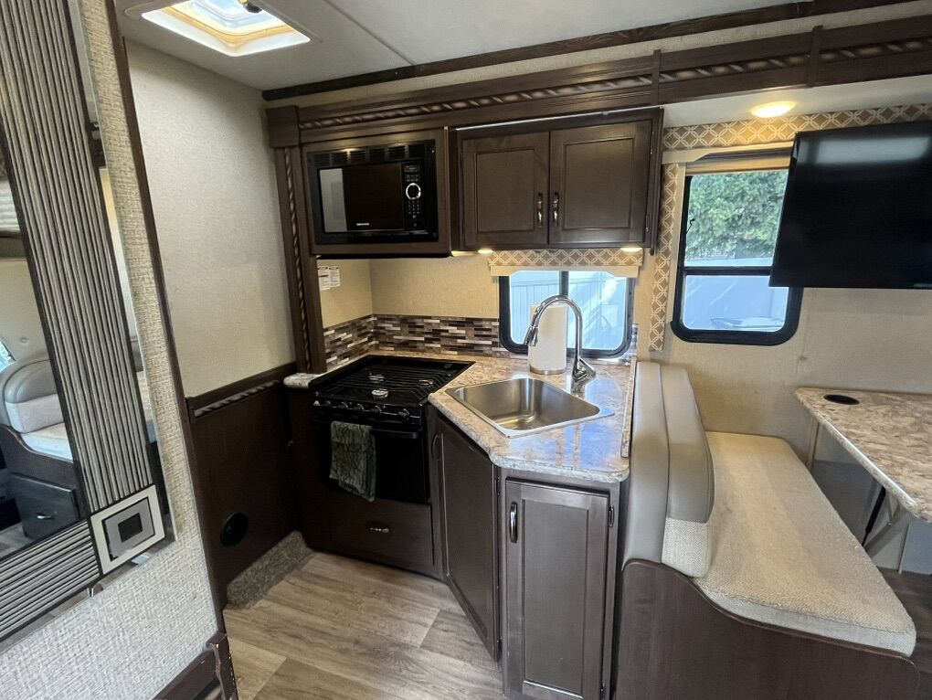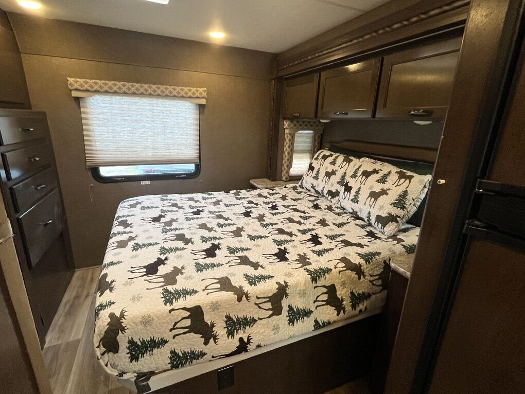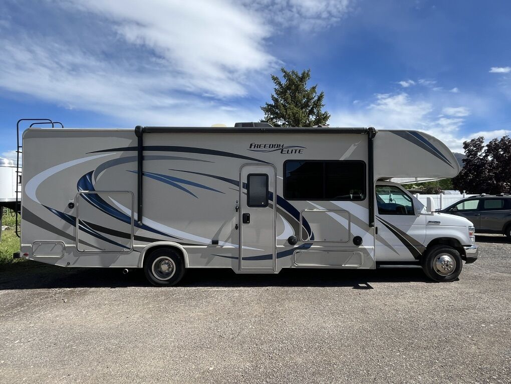 Details: 2018 Thor Freedom Elite 29FE 29ft. long 10.8ft. high 56,000 miles All tires are new Sleeps 6-8 7 seatbelts, including the drivers TV and DVD player inside Outdoor TV Outdoor kitchenette (mini fridge and sink w/garbage disposal) Two slide outs (kitchen & dinette and back bed) Queen bed Dinette and couch convert to a bed Bunk over the cab with ladder AC and heater Kitchen includes and oven, stove and microwave Three outdoor storage spaces In-house Cummins generator (pulls from the gas tank) 55 gal. gas tank 8,000lb. towing capacity 40.5 gal. fresh water tank 9.6 gal. propane tank RV cover for winter storage Leveling blocks Water hose Dumping hose