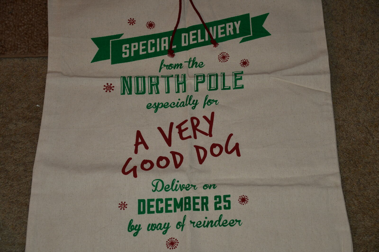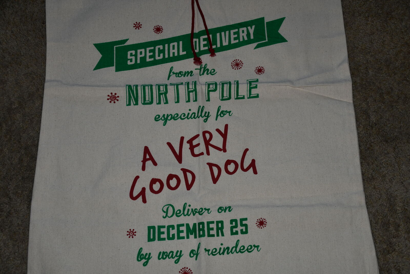 This NEW LARGE (33" x 21.5") CANVAS GIFT BAG FOR DOGS is from a smoke free home. It has a DRAWSTRING TOP. Questions??? Please ask. We are located in Plain City. Cash only please.