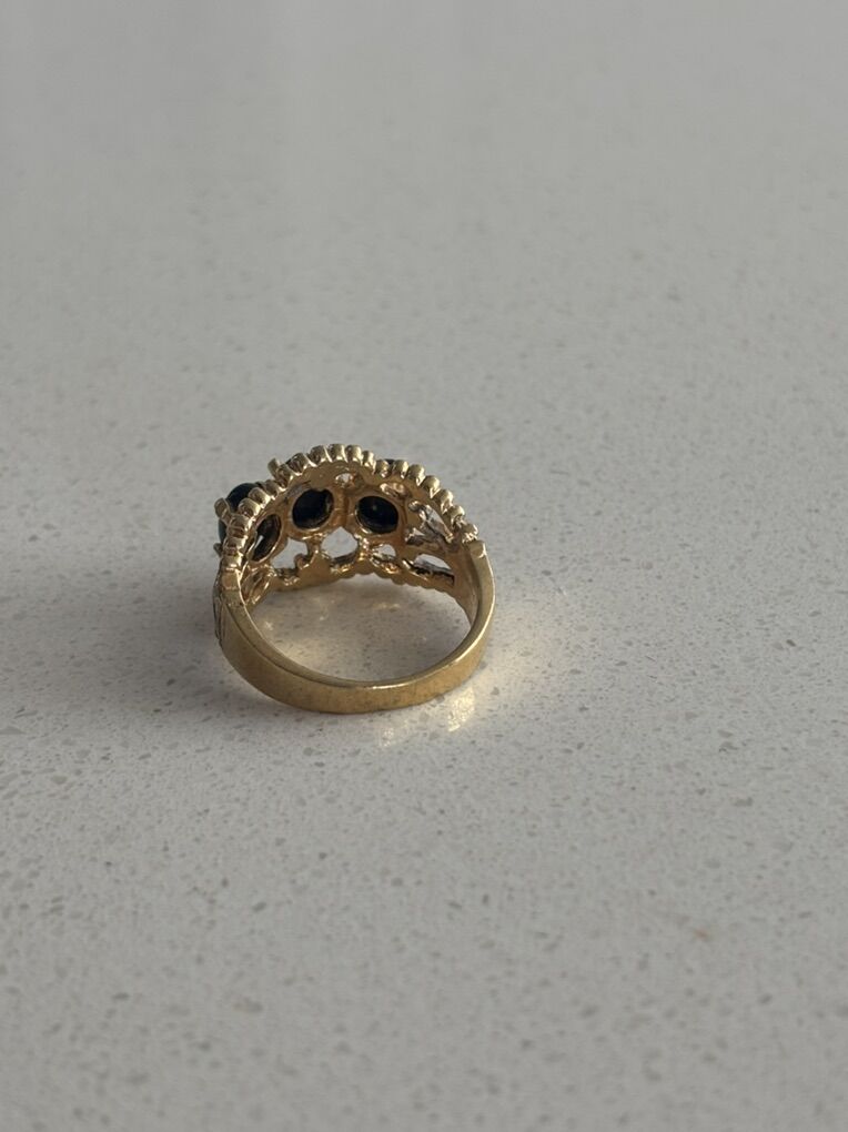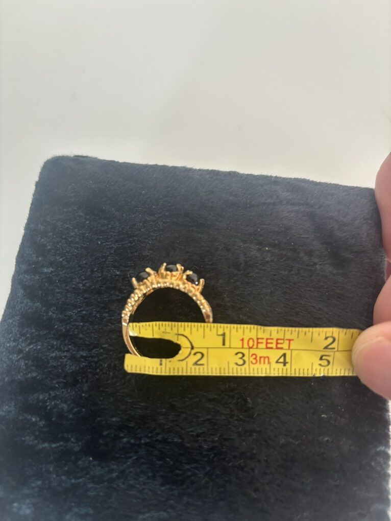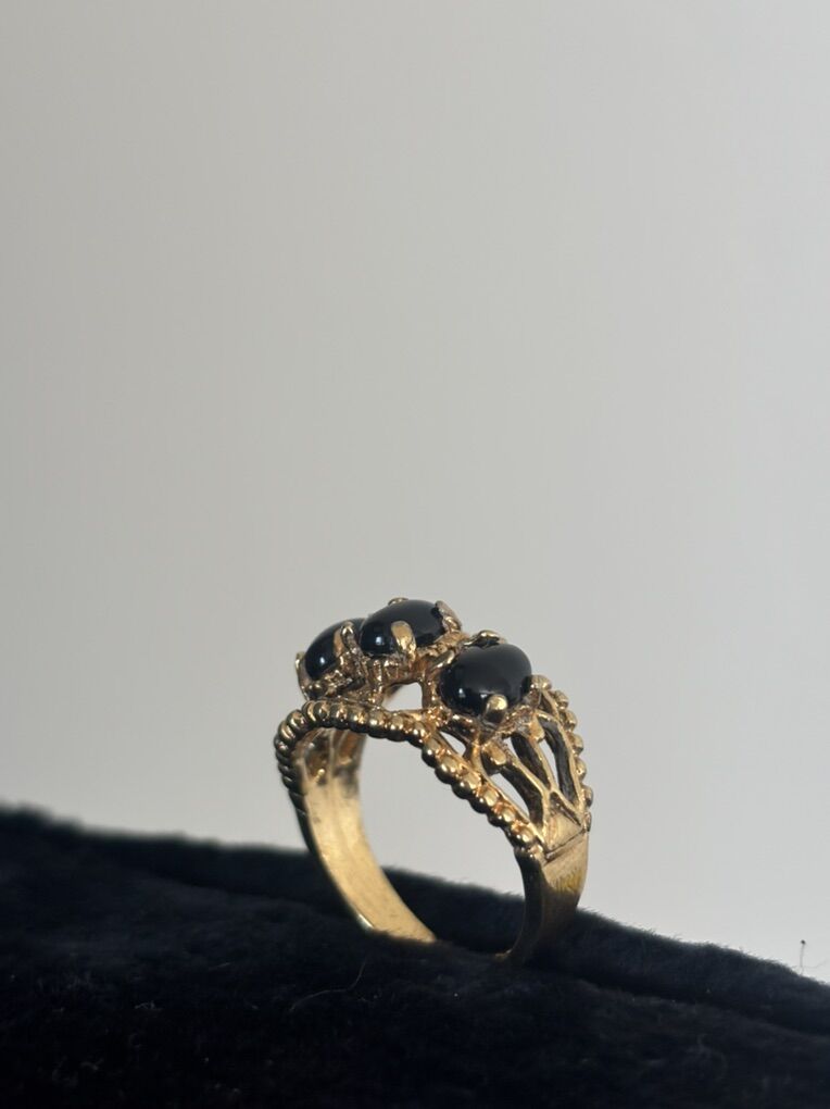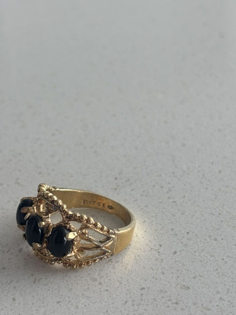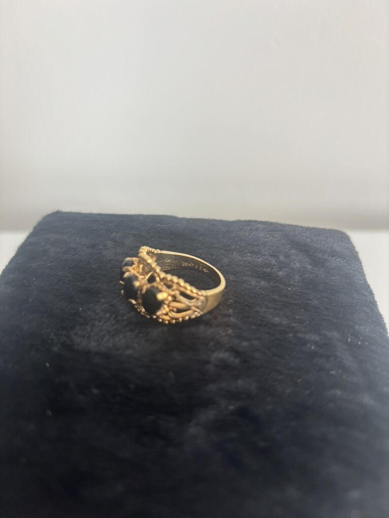 VenmoGenuine 18 K gold plated ring with Onyx stones. I took it to a jewelry store. They told me what they were and what the price is. Let me know if you’re interested.