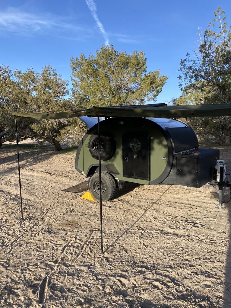 The Meaner Bean is the premium off-road teardrop trailer model, weighing in at 2000 lbs (dry weight). For the overland adventurer looking to go where no trailer has gone before with greater safety and comfort. Among many modern features, this trailer has 17″ of ground clearance, a Timbren independent suspension system, a LightLeaf solar panel, and Armadillo coated stand-on fiberglass fenders.