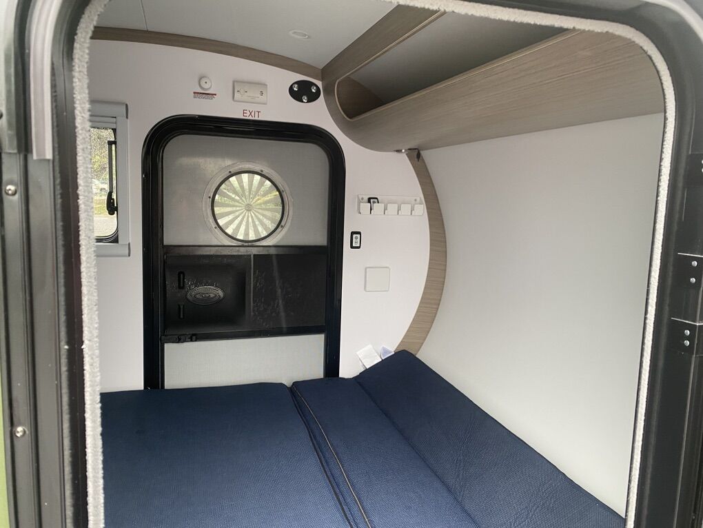 Galley details: -Premium Plus Galley (highest upgrade available) -Hatch mounted dome light -RGB strip lighting with touch controller -Paper towel dispenser -Stainless steel bottom edge trim -Lower storage area with washable surfaces -18” Partner Steep two burner stove with rack-out -Left mounted stainless steel sink, with folding/swivel faucet -18 gallon water tank, under frame mounted with aluminum skid plate -Filter and pump -Powder coated cooler/fridge rack-out (Accommodates larger 45 QT Fridge/Freezer)
