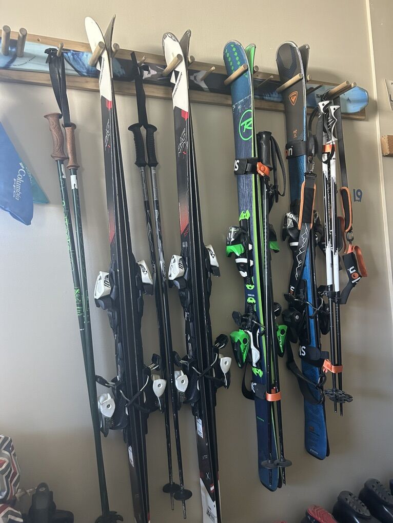 CashAppCustom made ski rack that holds 6 pairs of skis and poles. Made from live edge Wisconsin oak.