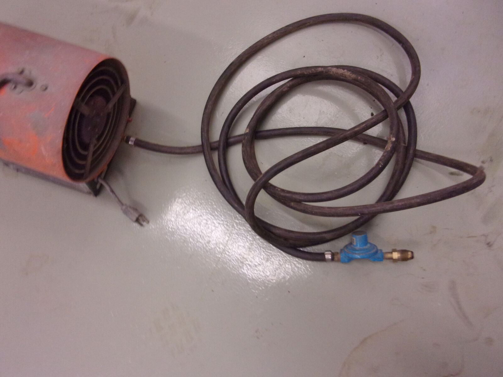This is a propane heater with a elec fan pitcher tells the size short hose and regulator