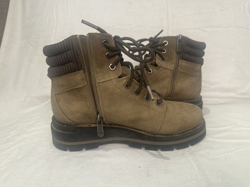 Timberland women’s size 7.5 brown leather waterproof ankle boots with side zippers for easy on off. These are in great condition, see photos for details. I take cash or Venmo, but cash is preferred. Text is best. 801-201-4446. Check out my other ads for additional sizes and styles.