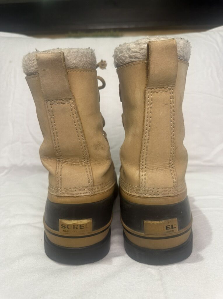 Sorel Caribou women’s size 8 beige leather uppers with black rubber foot bed and removable wool liners with fur trim on top waterproof boots. These are in good condition, see photos for details. I take cash or Venmo, but cash is preferred. Text is best. 801-201-4446. Check out my other ads for additional sizes and styles.