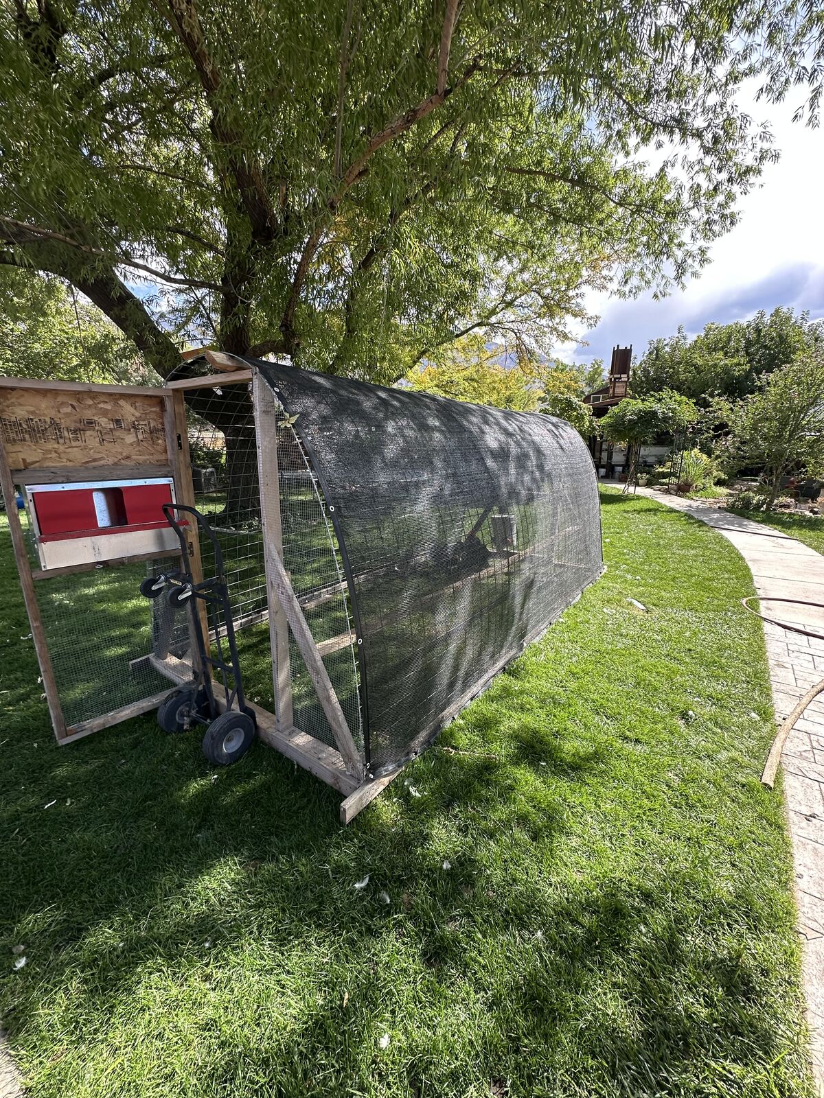 VenmoBig 6'x15' chicken tractor, with hen gear nest box and door on either end. We have decided it's too big for our yard. Needs wheels, we have just been using a couple dollies to move it around. Built with 4"x4" wire panels and 2x4s asking $975 you pick it up. For $250 more I can put it on my trailer and bring it to you if you are within an hour from Mapleton