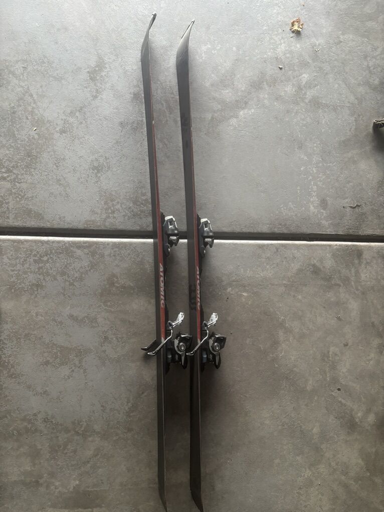 Selling a pair of Atomic Metron 9 skis (178cm, 16.0m radius) with integrated bindings. Great all-mountain skis known for stability and smooth carving. Perfect for intermediate to advanced skiers looking for reliable performance on groomers and mixed terrain.