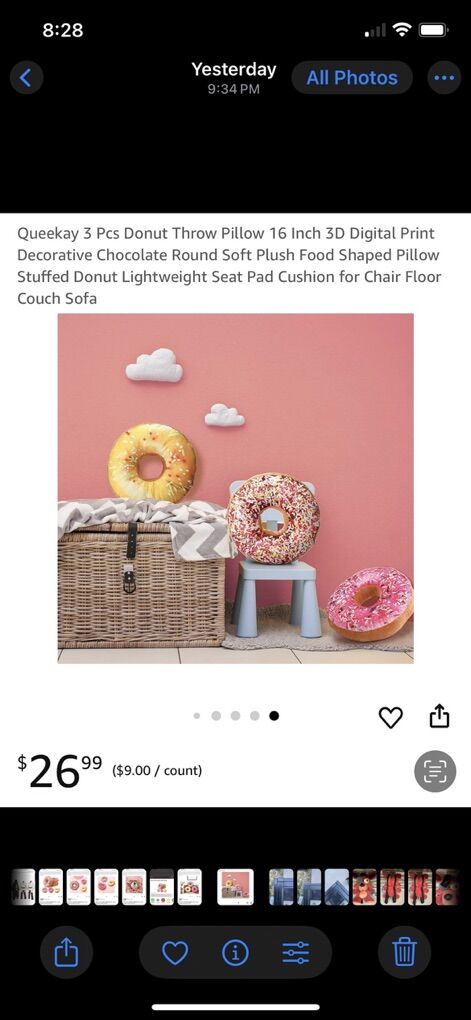 VenmoQueekay 3 Pcs Donut Throw Pillow 16 Inch 3D Digital Print Decorative Chocolate Round Soft Plush Food Shaped Pillow Stuffed Donut Lightweight Seat Pad Cushion for Chair Floor Couch Sofa.