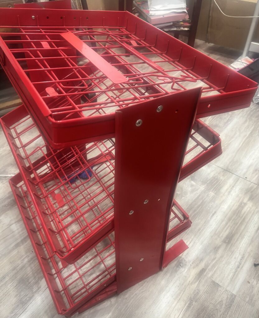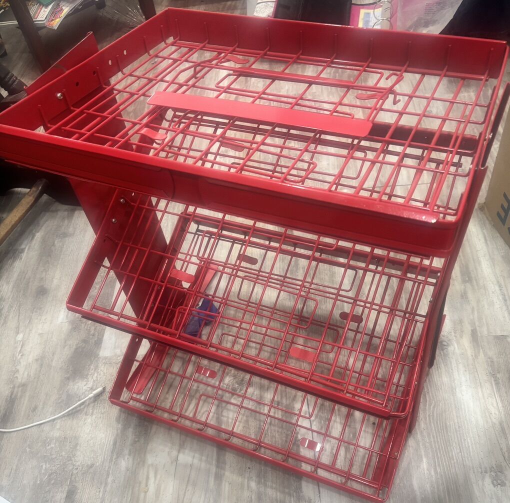 Zelle3 Tiered Metal Storage Rack Red 19”Tx19”Wx13”L Freestanding Display Case New. If interested, please call or text Jamie at 385-471-4333 thank you.
