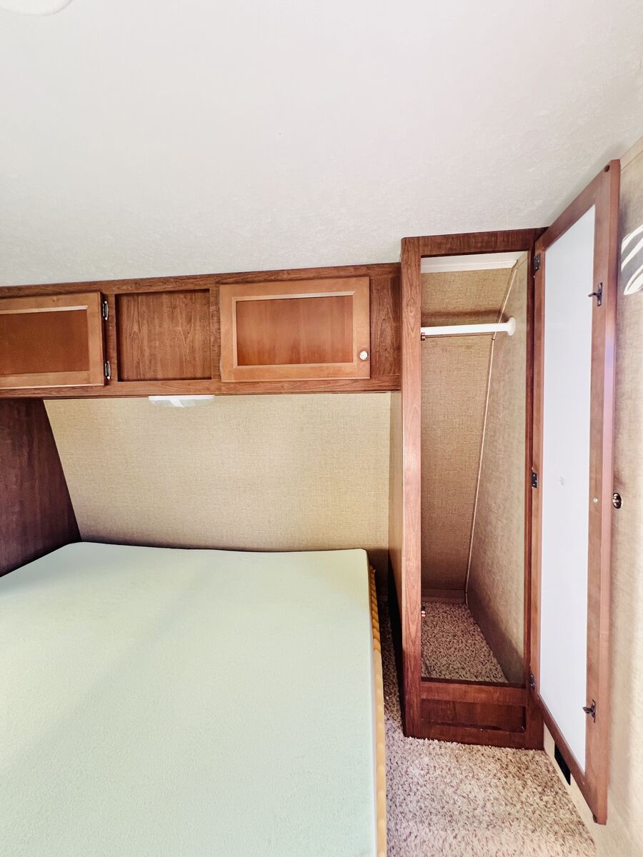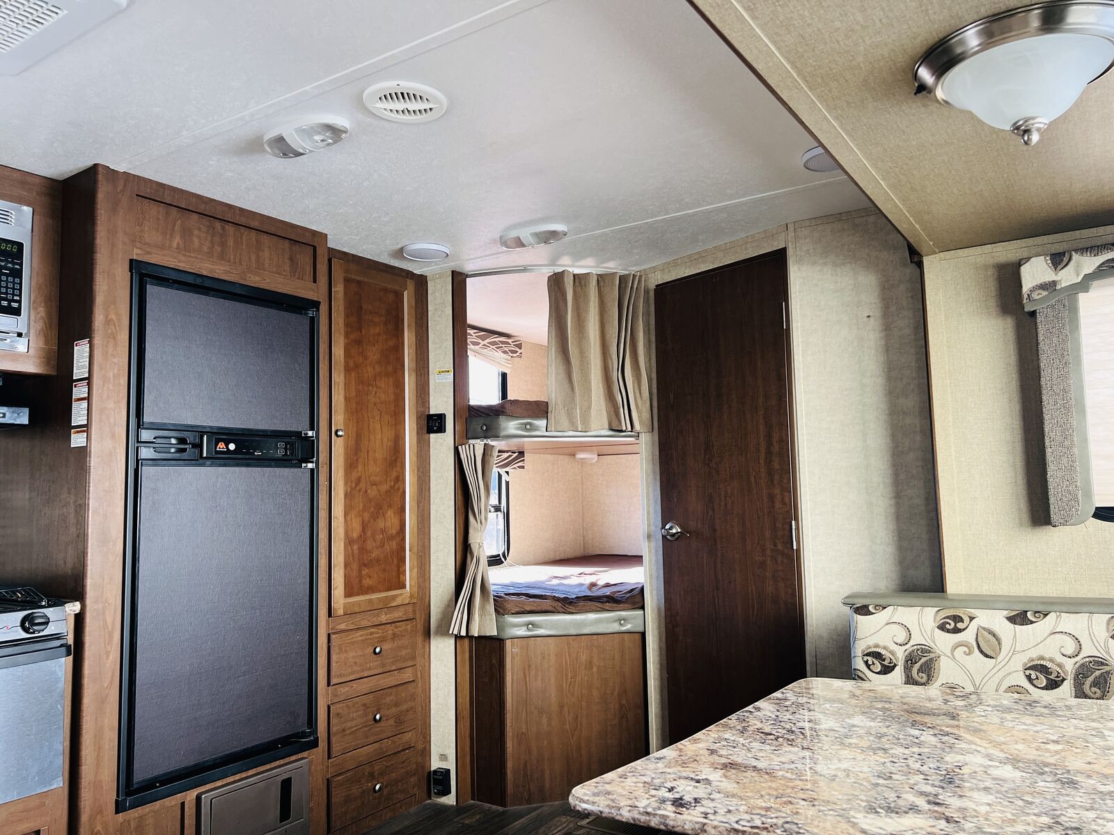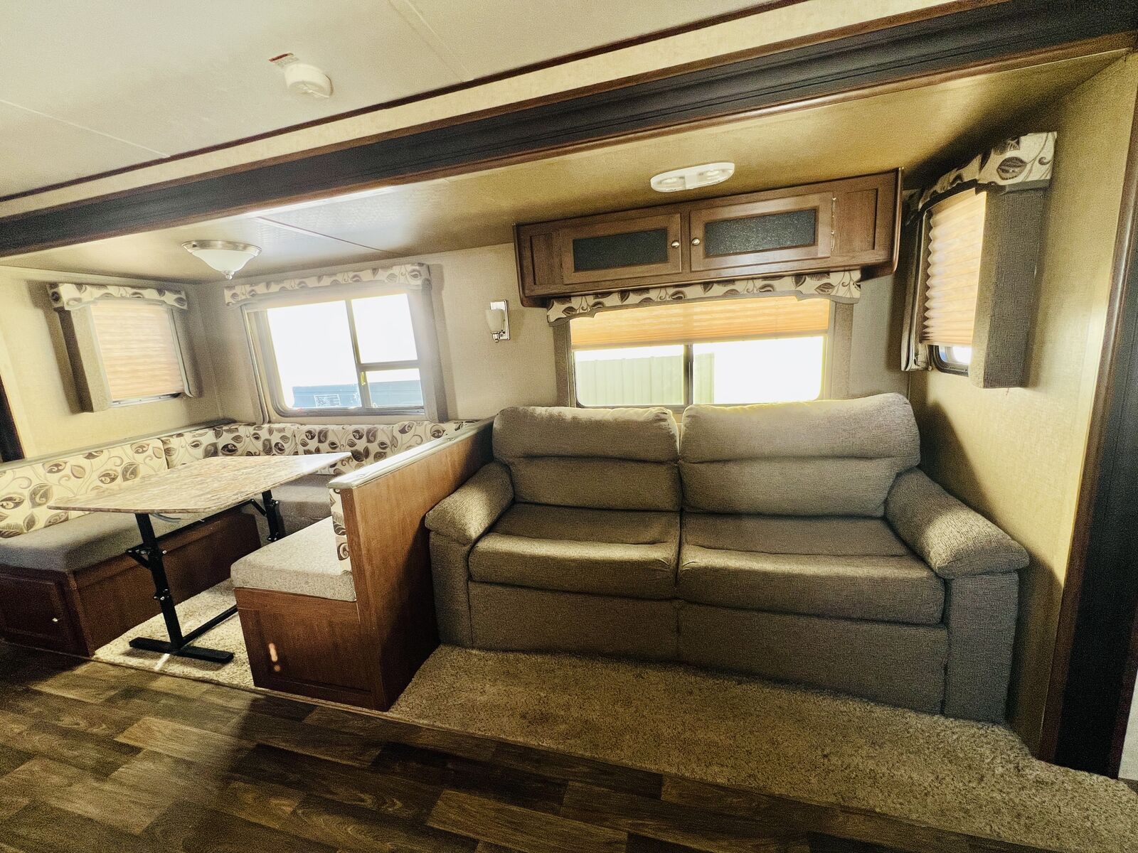 Family-Friendly LayoutPrivate front bedroom with queen bed and storage Double-over-double rear bunks for kids or guests Large U-shaped dinette and sofa for dining or lounging Sleeps up to 8 comfortably