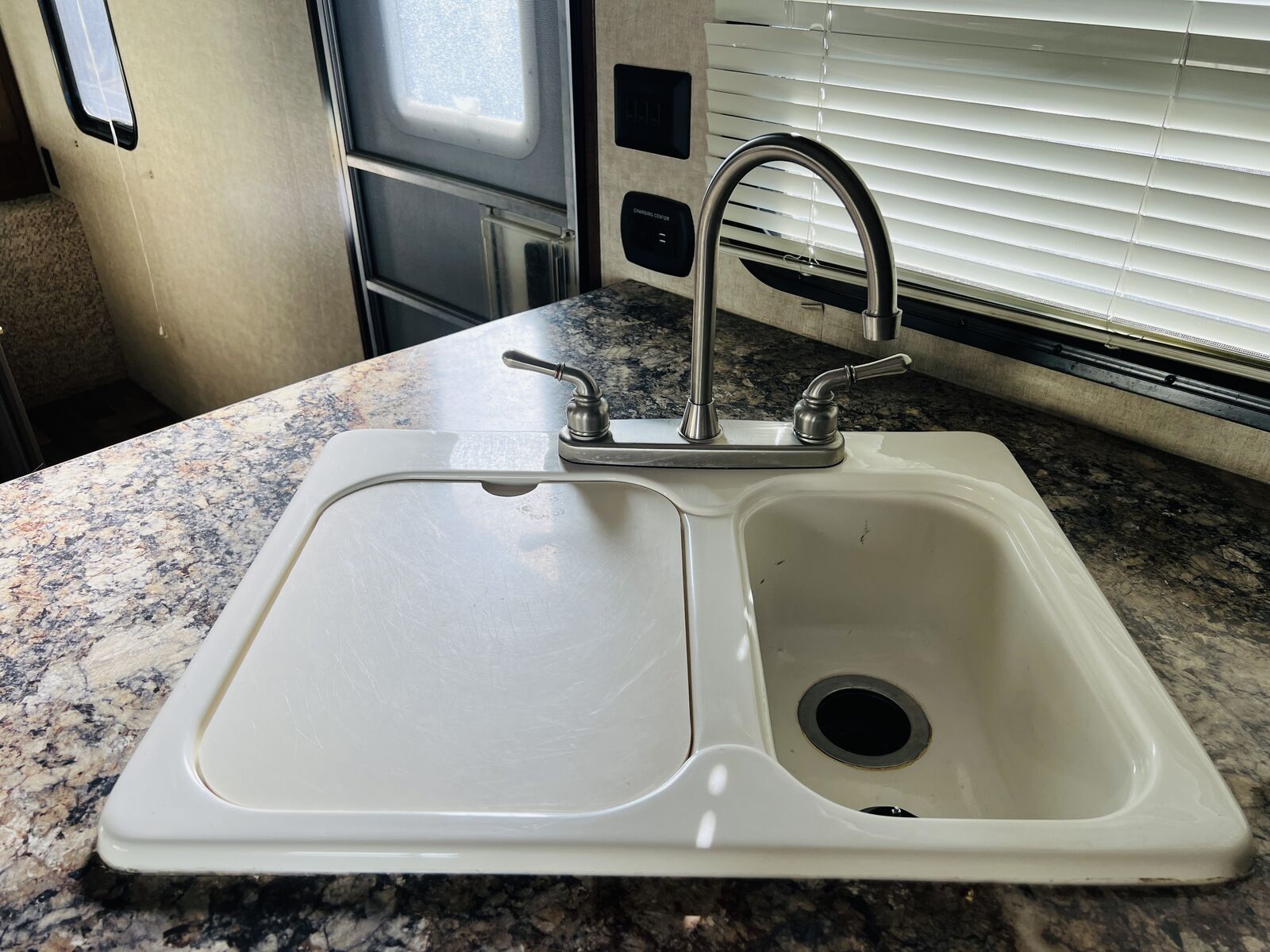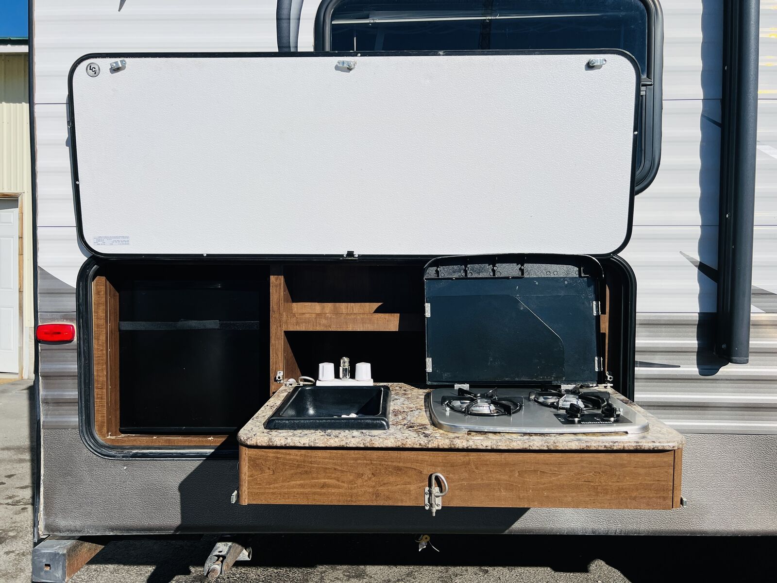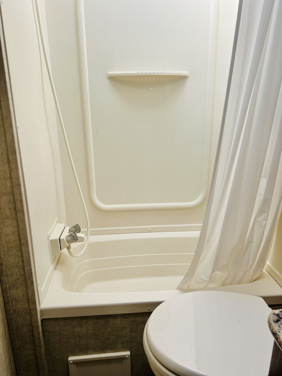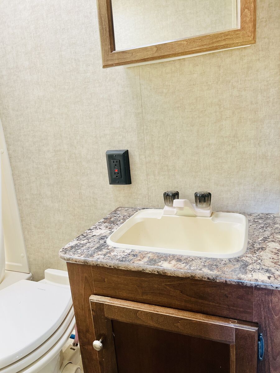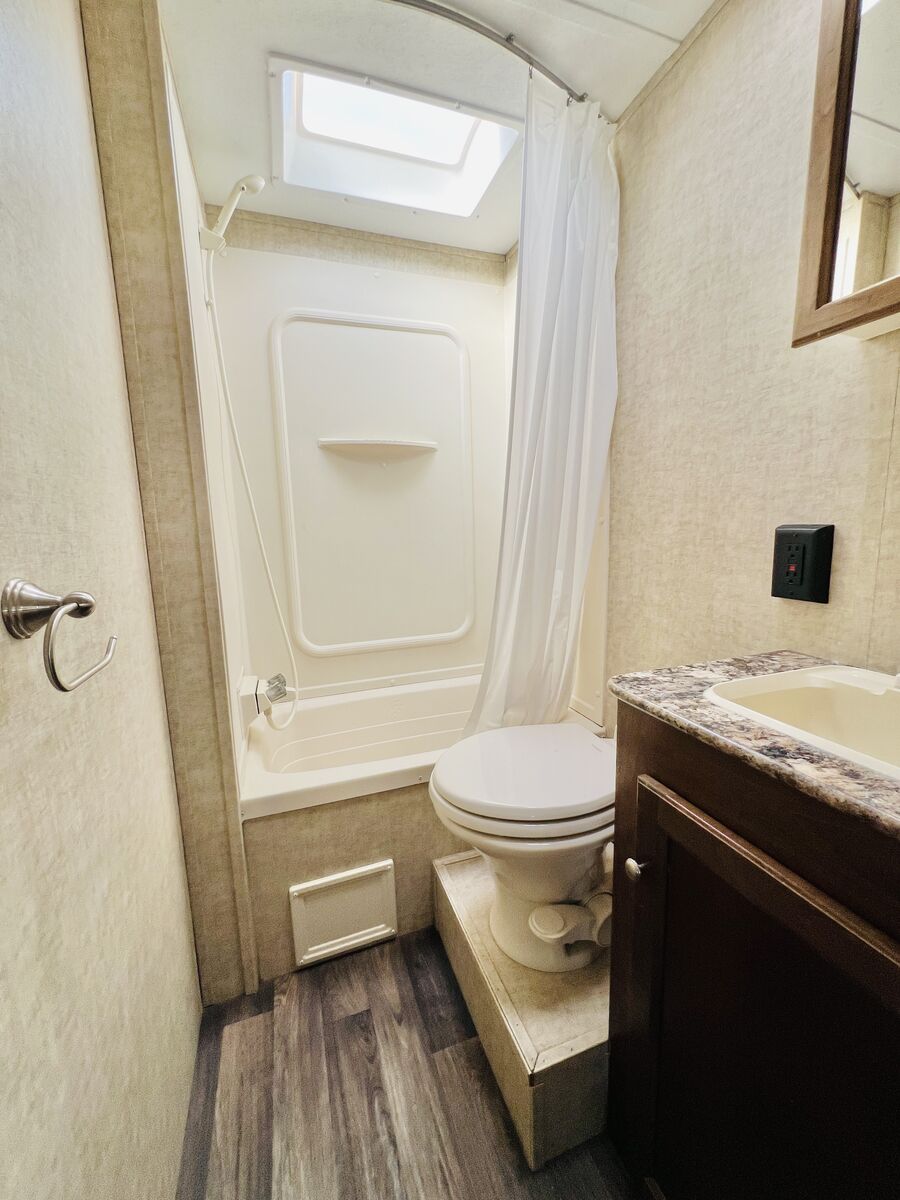 Bathroom ConvenienceFull bath with tub/shower, toilet, and sink Exterior access door for easy entry from the campsite