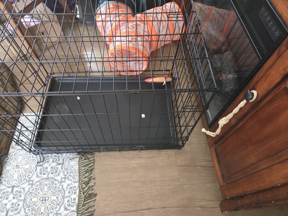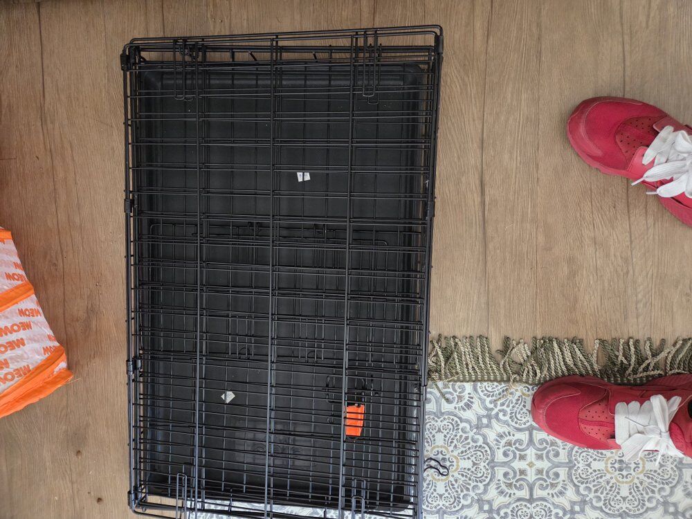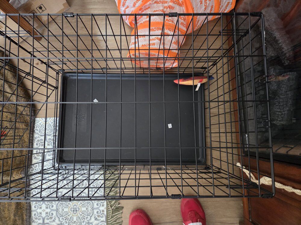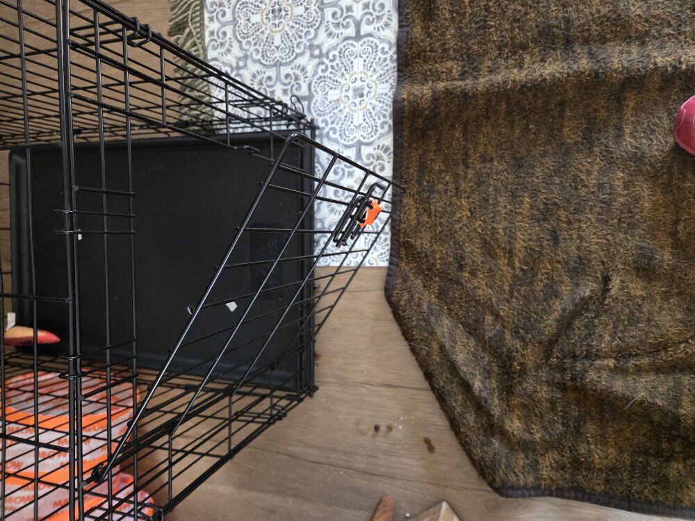 VenmoThis is a portable folding metal Dog Cage. Comes with a large tiger fleece throw blanket, heavy duty metal food and water dishes. 30"X21"X29" length,height and depth in that order