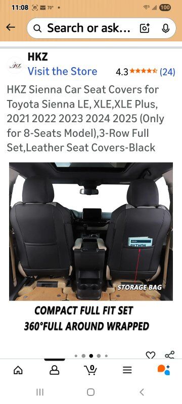 VenmoNew in Package! Toyota Sienna LE, XLE,XLE Plus Seat Covers (FULL SET) For Year-2021-2025