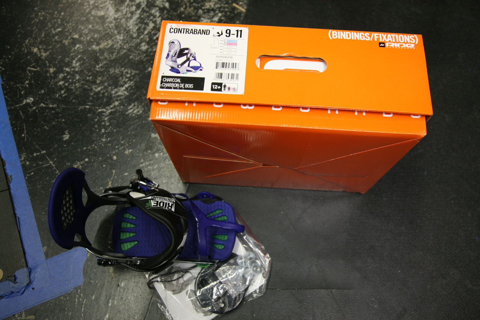 RIDE CONTRABAND OR NITRANE SNOWBOARD BINDING WITH PATENTED TOE STRAP