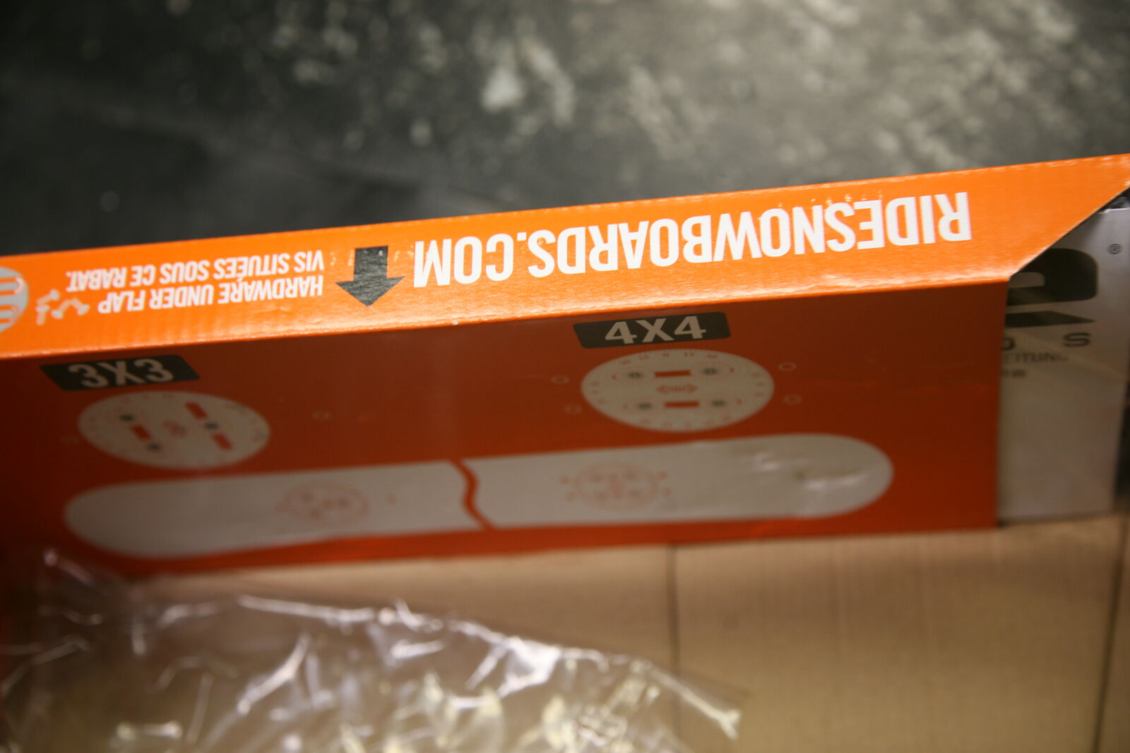 COMES NEW IN THE BOX WITH HARDWARE AND DISKS THAT WILL FIT THE 3 HOLE BURTON MOUNTING PATTERN , THE EST PATTERN AND STANDADRD 4 HOLE MOUNTING PATTERN IN THE BOARD