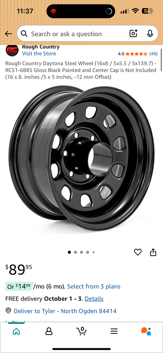 VenmoRough Country Daytona Steel Wheel (16x8 / 5x5.5 / 5x139.7) - RC51-6885 Gloss Black Painted and Center Cap is Not Included (16 x 8. inches /5 x 5 inches, - 12 mm Offset) — New