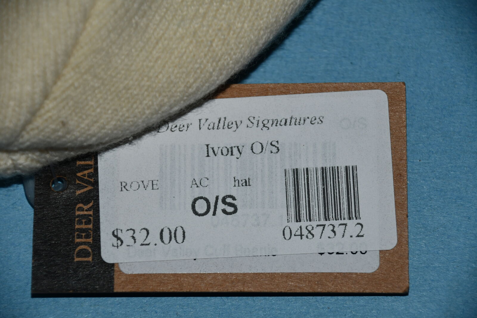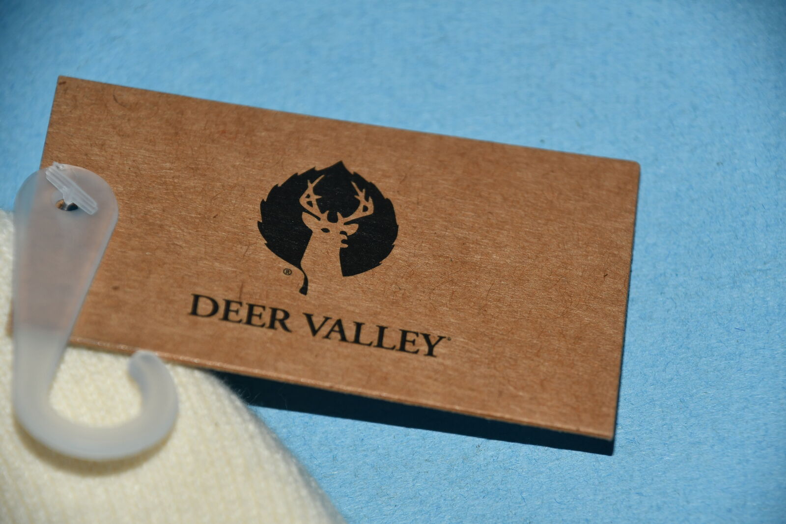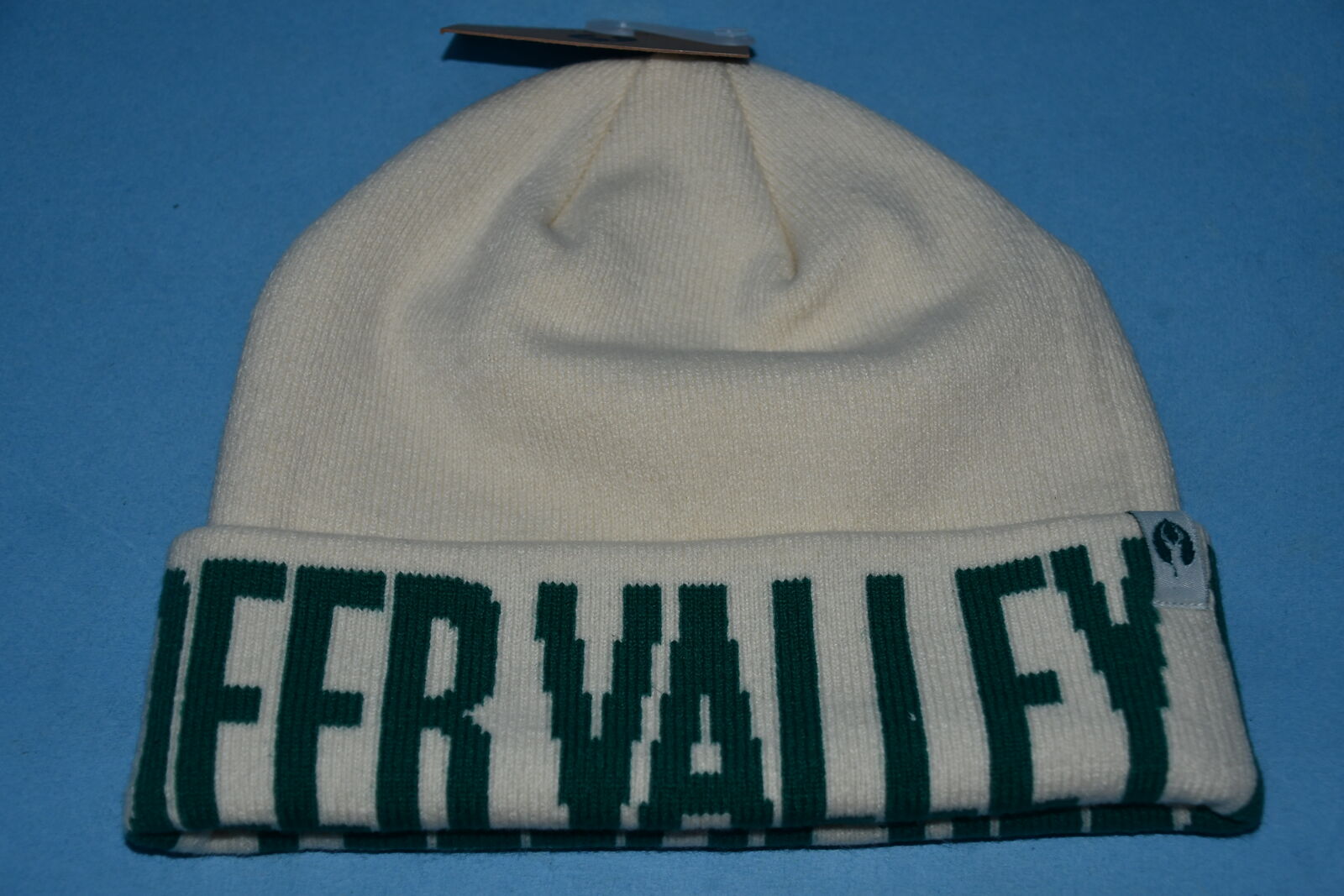This NWT ($32) DEER VALLEY HAT is CREAM with GREEN LETTERS. It is an ADULT S. It is 100% ACRYLIC. Our home is smoke free. Questions??? Please ask. We are located in Plain City. Cash only please.