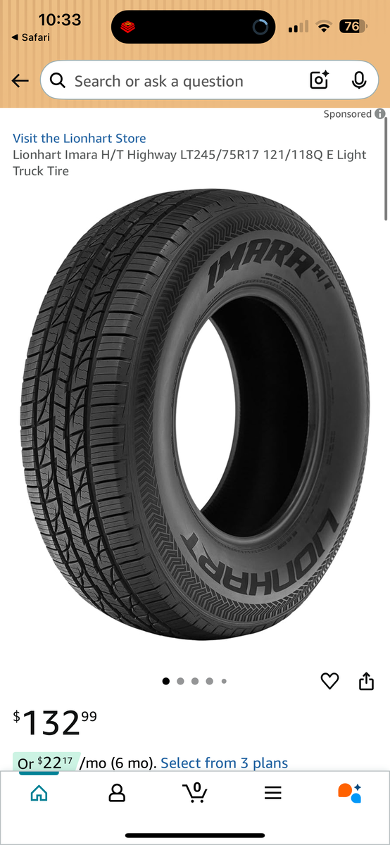 VenmoLionhart Imara H/T Highway LT245/75R17 121/118Q E Light Truck Tire — New