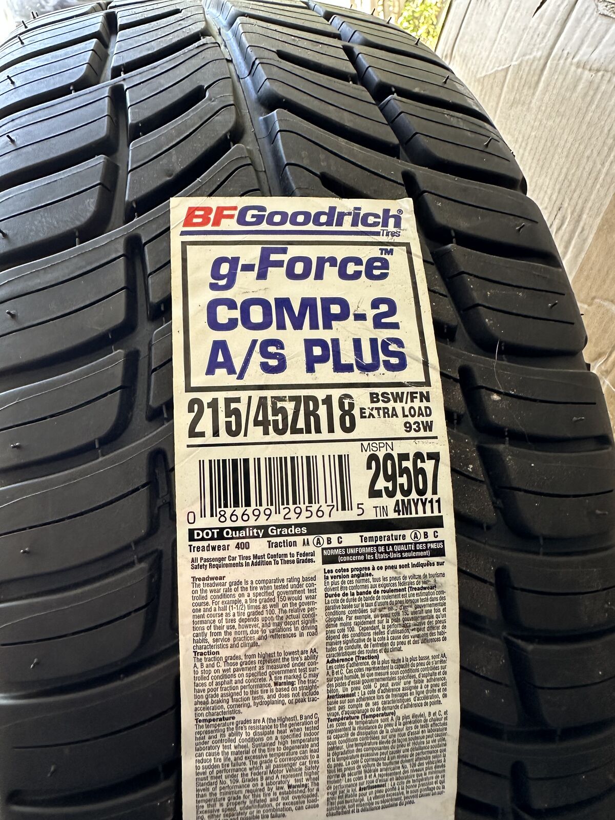 VenmoBFGoodrich G-Force Comp-2 A/S Plus All-Season Radial Car Tire for Ultra-High Performance, 215/45ZR18/XL 93W — New