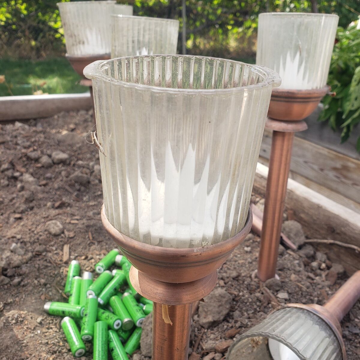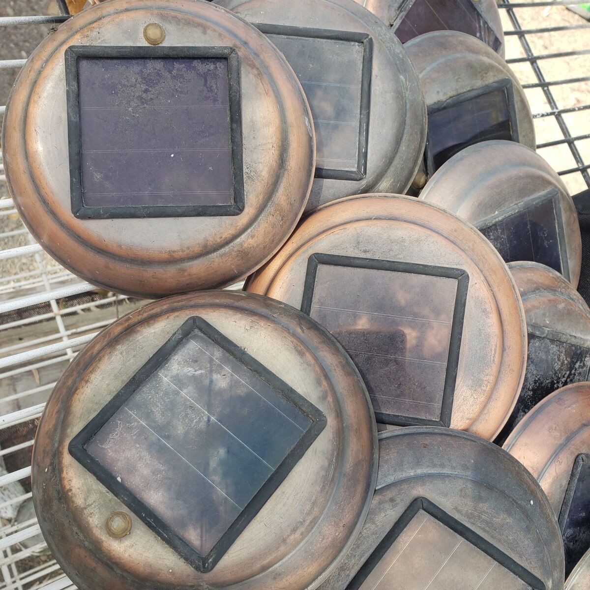 VenmoBatteries are probably dead so I removed them all. Haven't been tested in years but have many good stems, stakes, glass globes and several may work with new batteries. on/off switch. Cash or Venmo. $5 Takes all