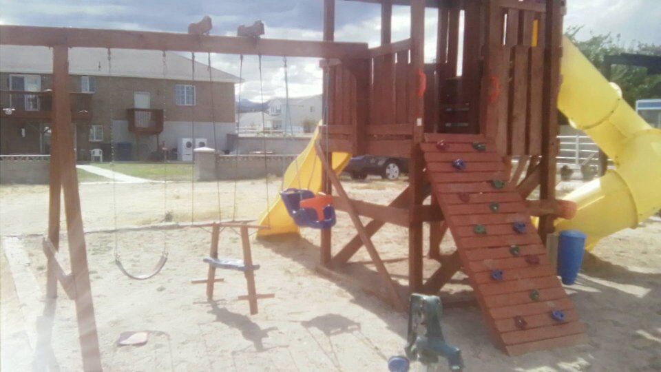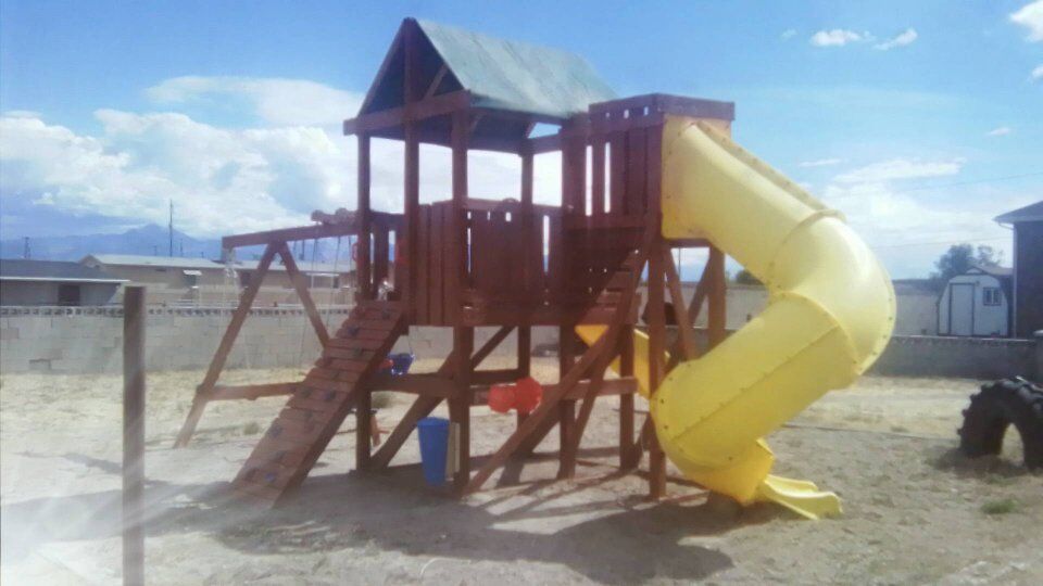 VenmoThis set includes 2 slides. 2 swings, toddler swing, tire swing. Also has a couple drums, ships wheel and climbing wall. Newly painted and seal coated.