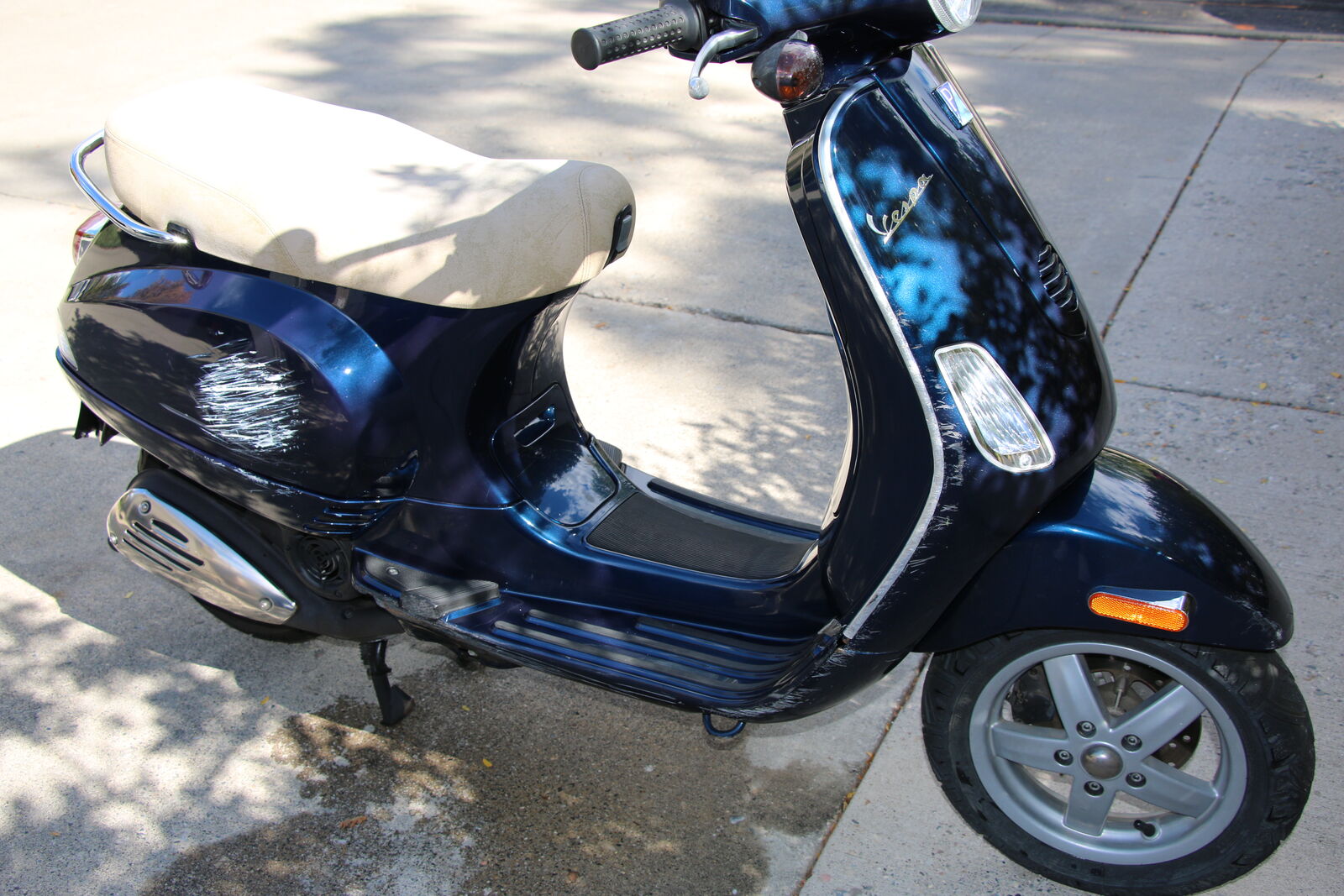 Second owner. Recent: carburetor cleaned and gone through, new battery, spark plug, oil change, brake fluid flush, speedometer cable and instrument cluster. Includes a L/XL helmet with visor and retractable eye shield, and a full cover to protect the scooter from inclement weather or dust. 100% ready to go. Engine has about 3,400 miles on it (I have the old speedometer/odometer.) Text or call.