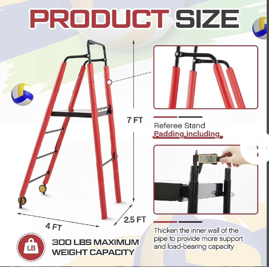 When folded, the overall dimensions are 84' h x 30' w x 10' d, making it convenient for storage Standalone Volleyball Umpire Stand: is an ideal choice for youth;