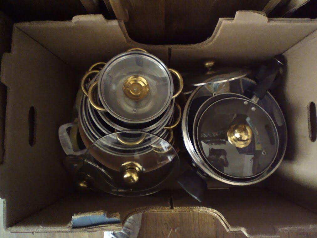 GooglePaySET CHROME SOUP SAUCE PANS WITH LIDS (NEW CONDITION), A COPPER FRYING PAN AND ATTITIONAL MISC PANS (GOOD CONDITION).