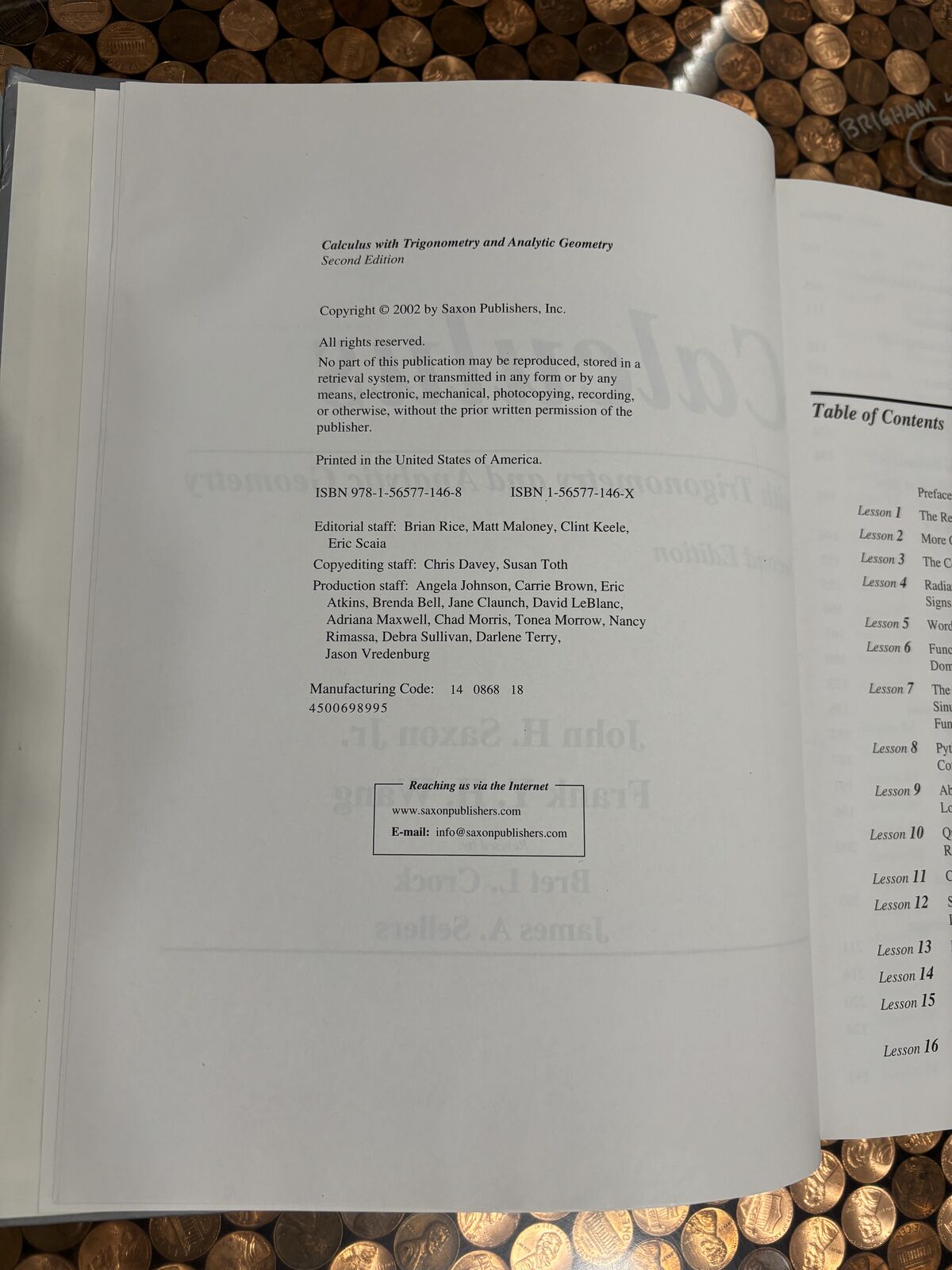 ApplePaySaxon Calculous with Trigonometry and Analytical Geometry hardback sceond editon and the same Solutions Manual paperback. Both in good conditon. $65 for both. Text 801-232-7234 or message thru KSL