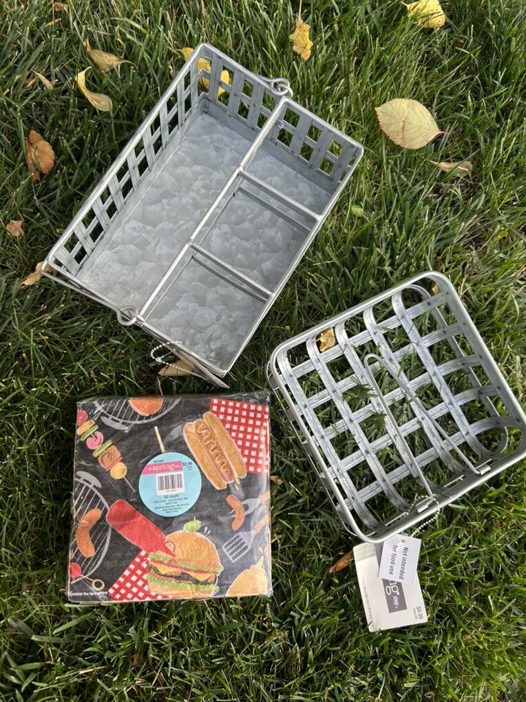 VenmoEverything is New with tags aluminum napkin holder and divide compartment for knives, forks, spoons and plates with a carrying handle. Picnic theme paper napkins are all perfect for a bbq or outdoor dining. Clean smoke free home. Cash or Venmo. Pick up from Alpine.