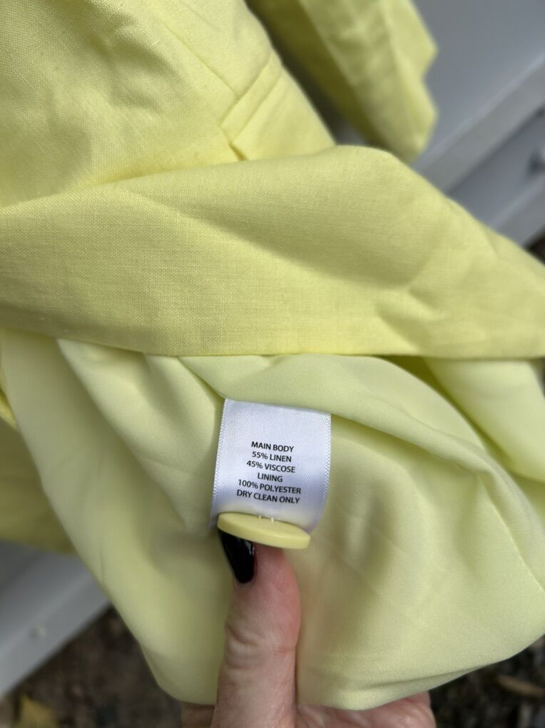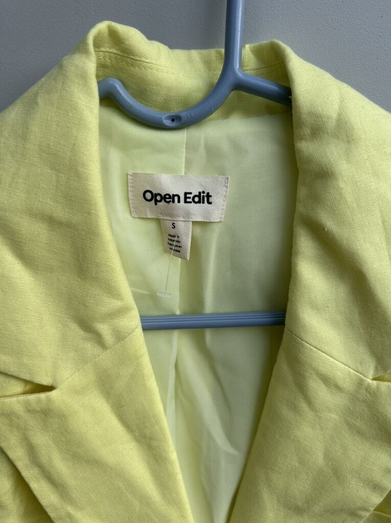 VenmoNew with tags from Nordstrom Open Edit linen one button blazer in women’s size small. Clean smoke free home. Beautiful yellow color. Cash or Venmo. Pick up from Alpine.