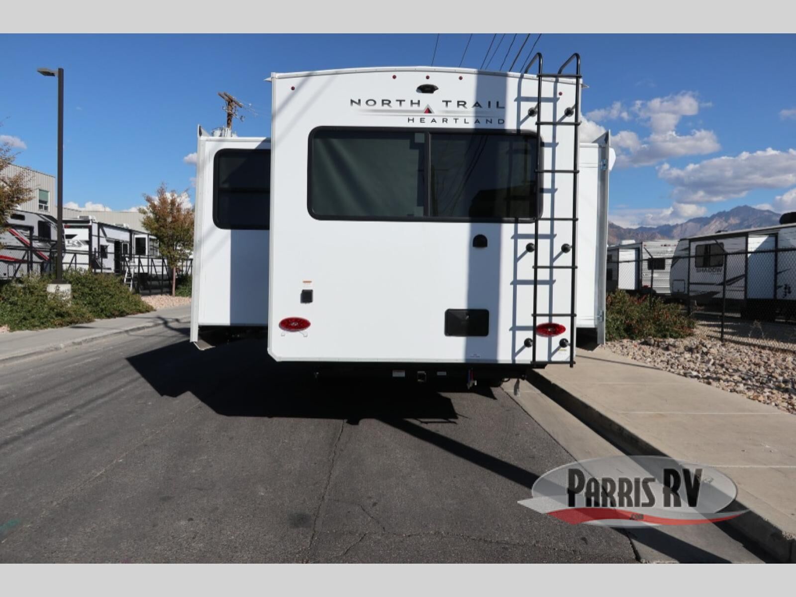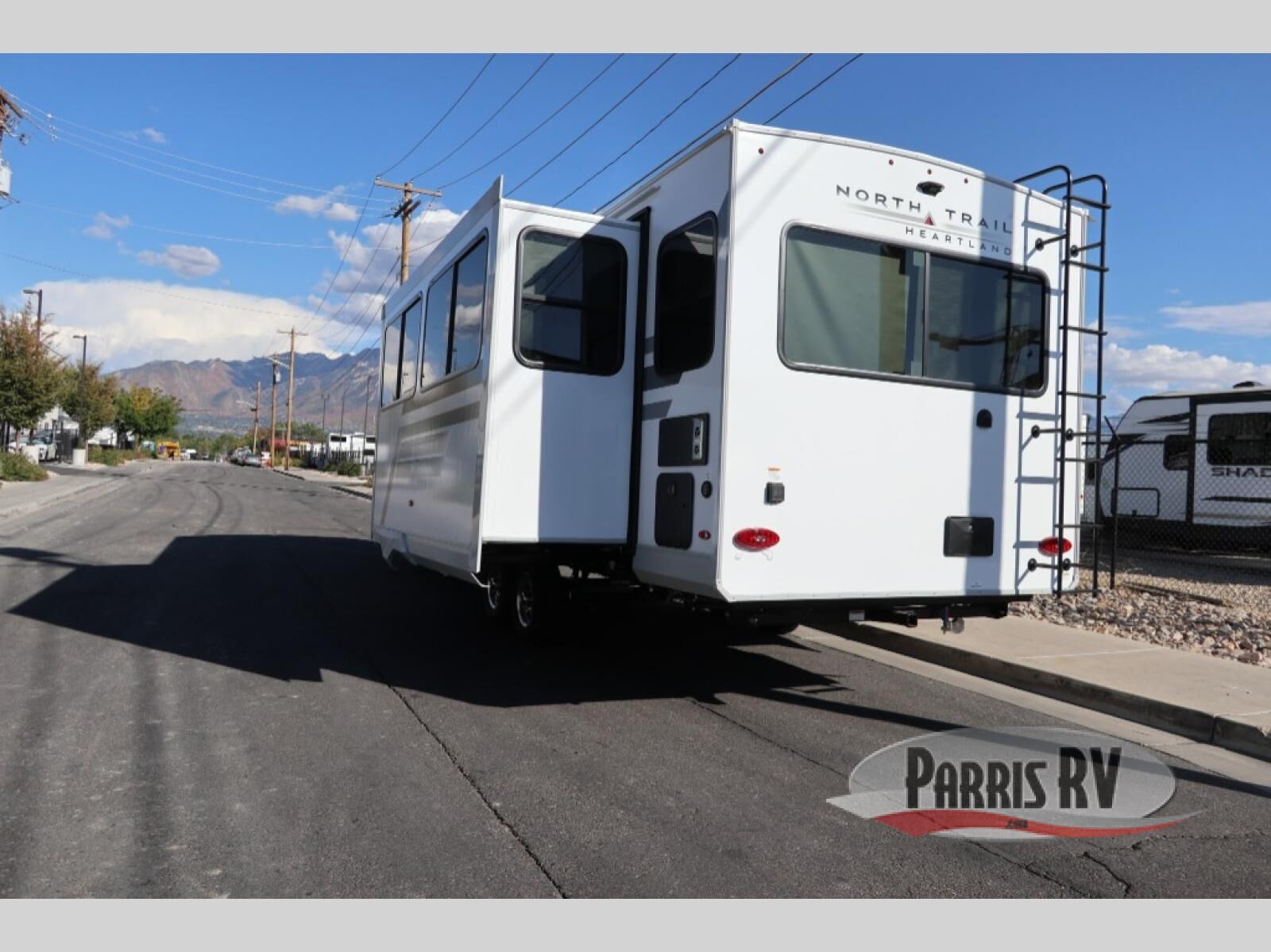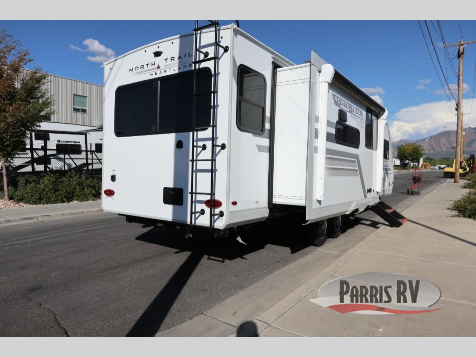 Built for comfort, durability, and modern convenience, these Heartland North Trail travel trailers offer everything you need for a premium camping experience. Each model features a strong American-made Norco Z-frame with an aerodynamic front profile and front diamond plating for added protection. The exclusive TrusstXL Roof System and CoreShield vacuum-bonded walls with Azdel provide superior insulation. Inside, enjoy residential comforts like seamless countertops, solid hardwood maple cabinet doors, LED lighting throughout, and 60 x 80 in. queen beds or 60 x 76 in. Murphy beds. Tech-ready features include an LED smart TV, USB ports, TPMS monitoring, and a 200W solar panel with 30 AMP digital controller. With a Quiet Series A/C, on-demand 60K BTU water heater, with these trailers you are equipped to make every trip comfortable and adventure-ready.