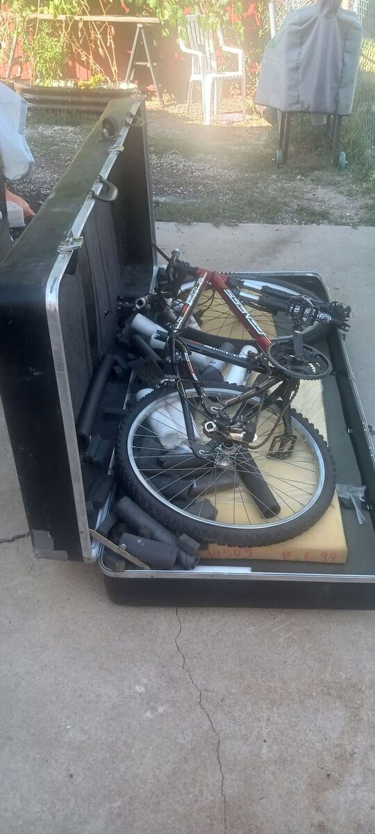 VenmoBicycle suit case for 2 bikes or a tandem bike. Huge hard case for travel or transporting bikes or whatever else. It has wheels that slide on/off to roll it around or carry with 2 handles and has 3 latches to lock it closed. Not as heavy as it looks, foam pieces included to protect bikes. (29er Mtn. bike in it 4show not incl.) Txt msg best for more info or make an offer.