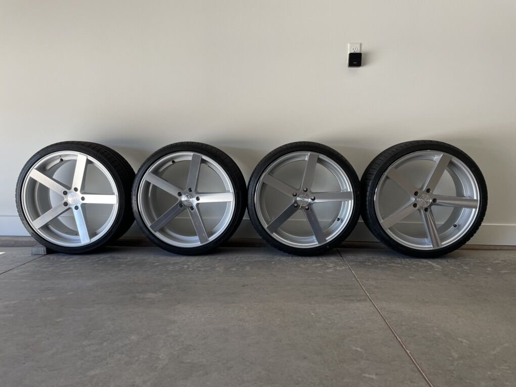 Like New Rohana 20” Machined Silver Wheels with Tires Audi / VW Like new condition 20 X 9 Rohana RC22 Machine Silver wheels for Audi / VW 5 X 112+ Bolt Pattern 35 mm Off Set. Wheels originally cost $415 / wheel. $1660 total. New 255 / 30 ZR20 Falken Azenis FX510 Tires mounted on wheels. $ 250 / Tire $1003 for the set. Asking $1700 for the wheels and tires. Also, have 5 mm Audi / VW Hub-centric spacers that will come with the wheels and tires if needed. Wheels and tires were originally mounted on my Audi A6 4.2 wide-body which I have now sold. Only 200 miles were driven on these wheels and tires. Please call or text with any questions. Asking $1700. Pristine like new condition. 1-801-389-7077