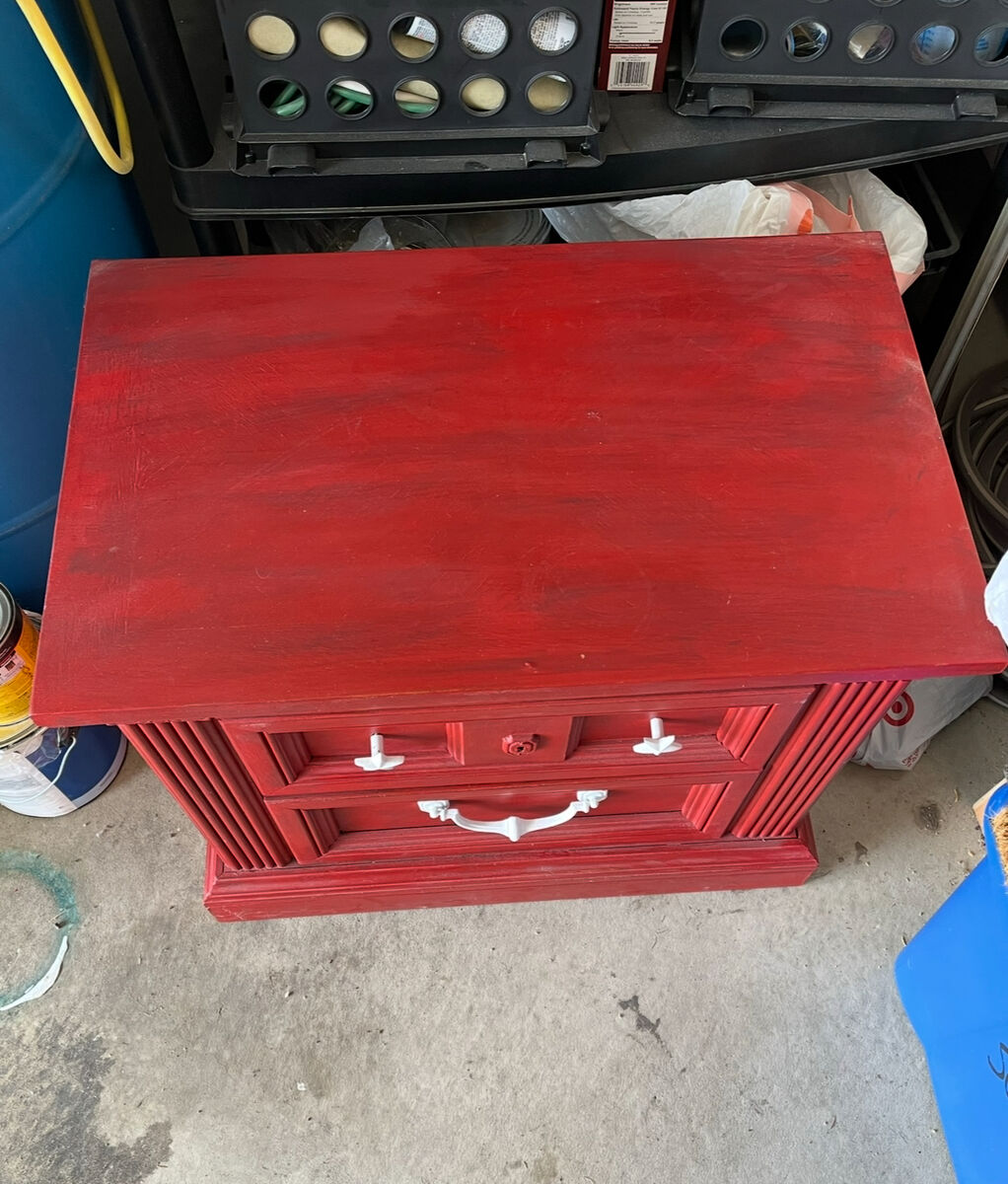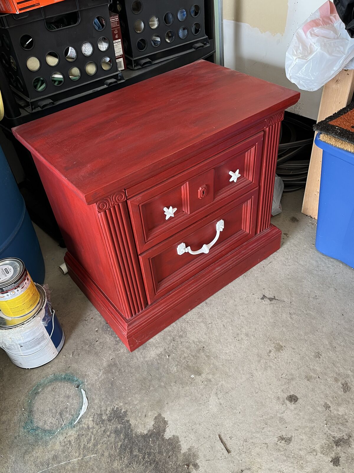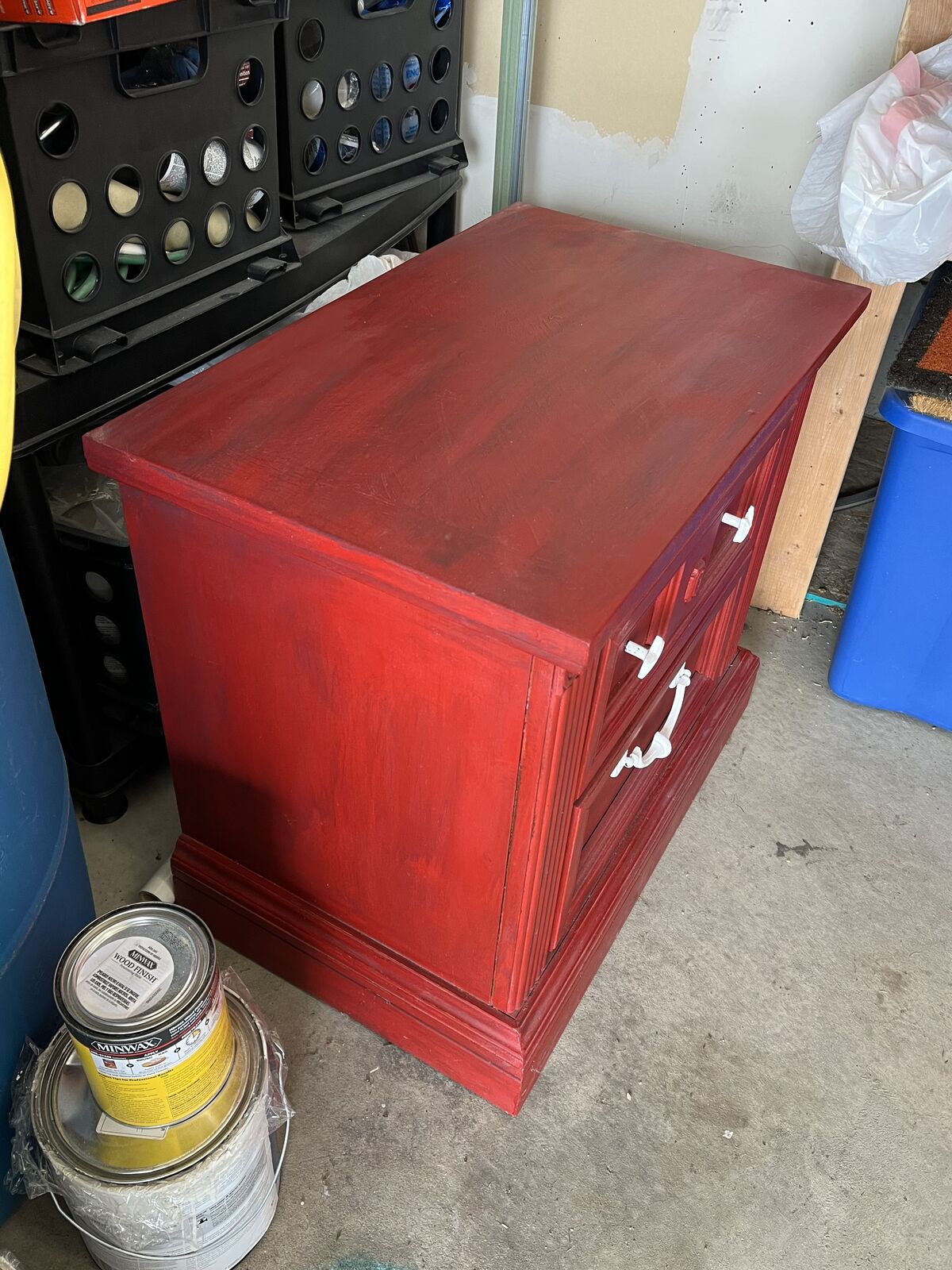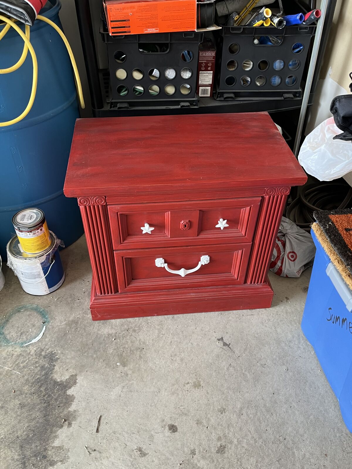 VenmoSolid wood. Great condition. Vintage, minus the paint job ;). 26 L 16 w 23 h