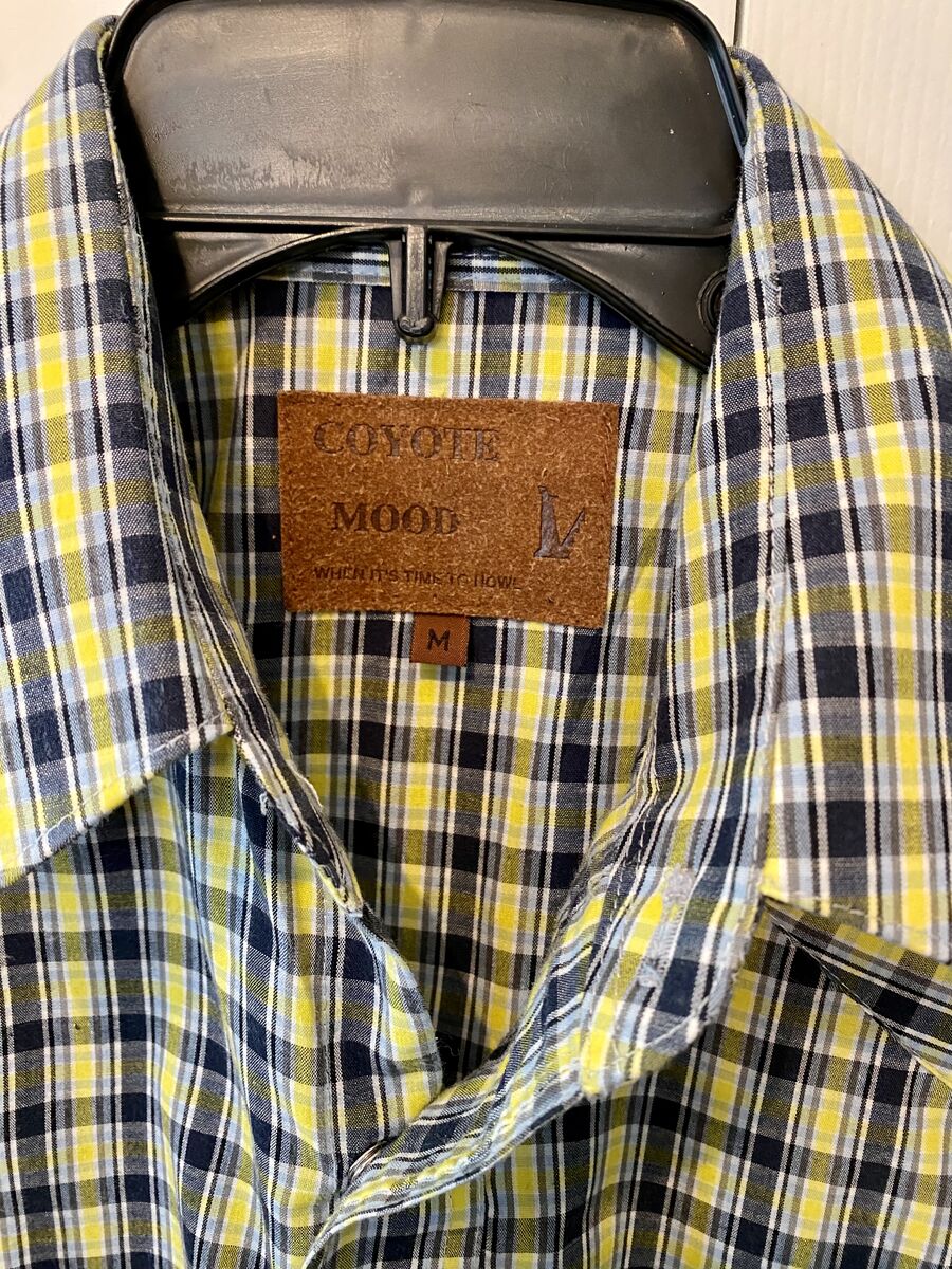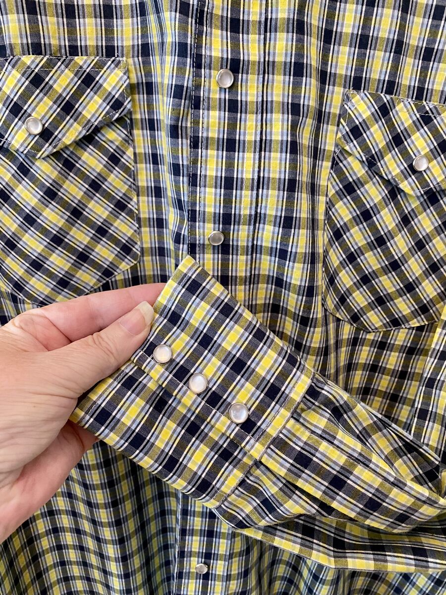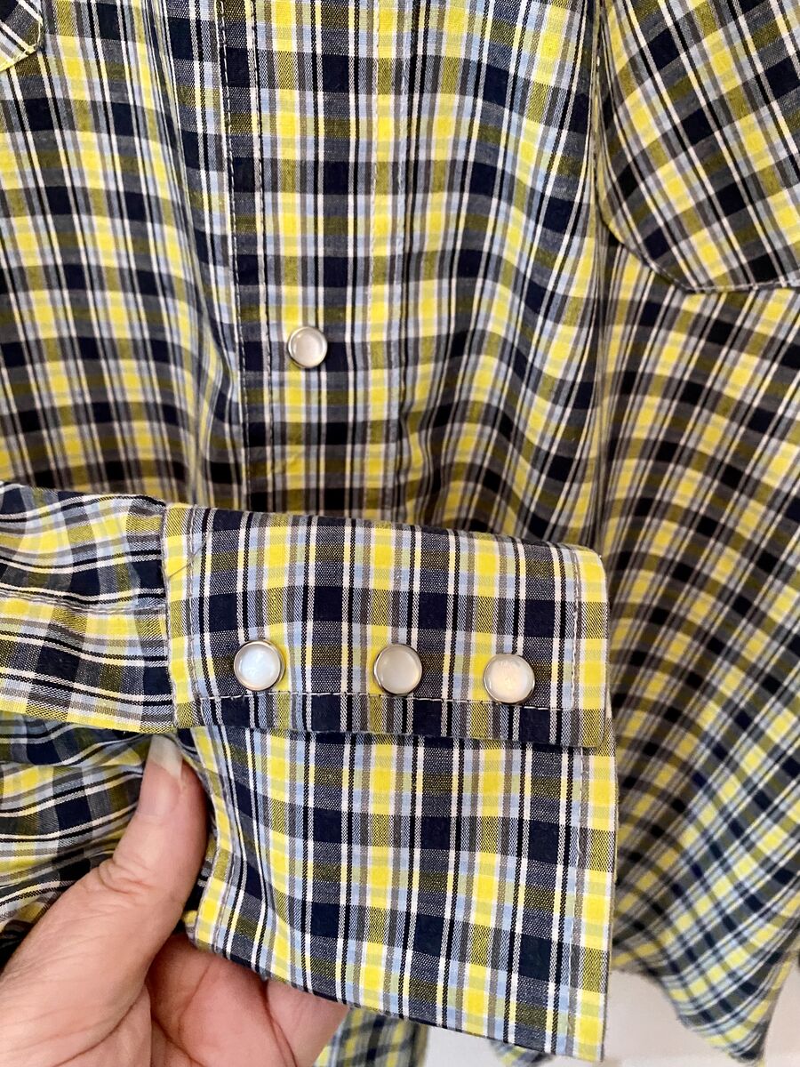 Like NEW- Mens Sz M Western Long Sleeve Shirt w/ Pearl Buttons - Yellow-Blue-White - Light Weight - C PIXS. Got it for a concert, wore it once.