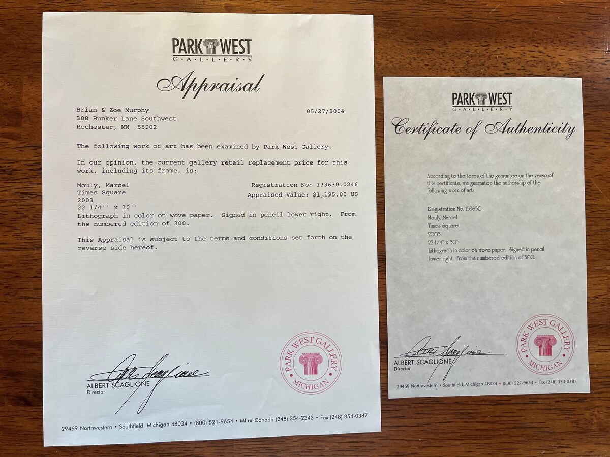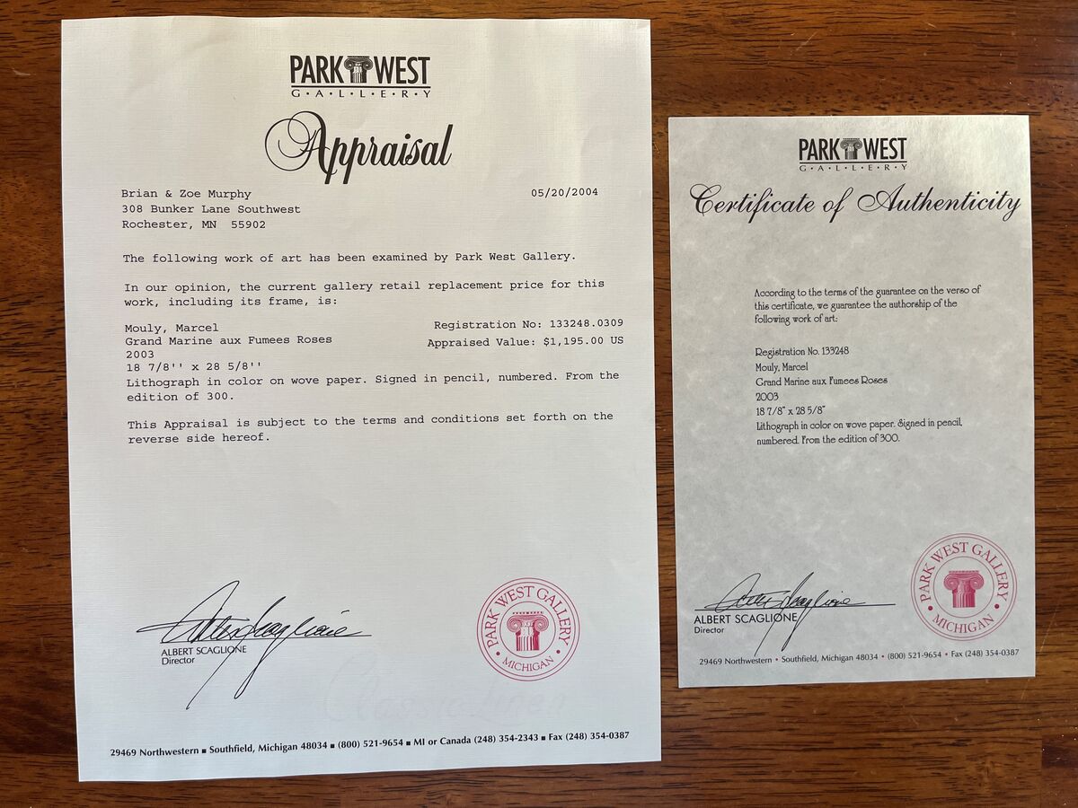 Marcel Mouly (1918-2008), a French artist who painted in an abstract style; associated with the Fauvism movement of the early 20th century. Lithographs in color on wove paper. Signed in pencil. Included: Certificates of Authenticity and Appraisals (2004).