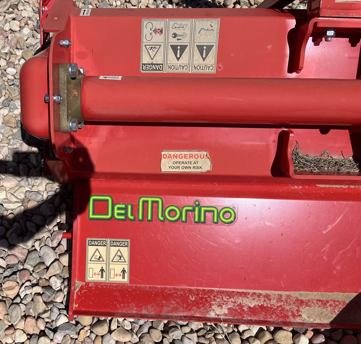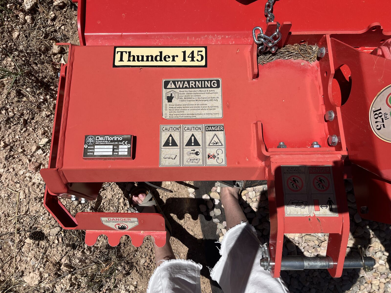 VenmoDelMorino Thunder 145 tractor rototiller for 12-40 HP tractors. 145cm / 58" working width (160cm / 61" total width), 28 hoes, 425lb weight.