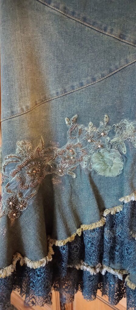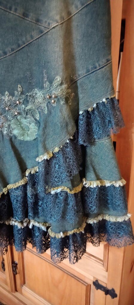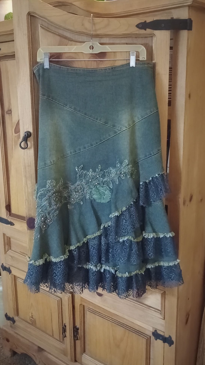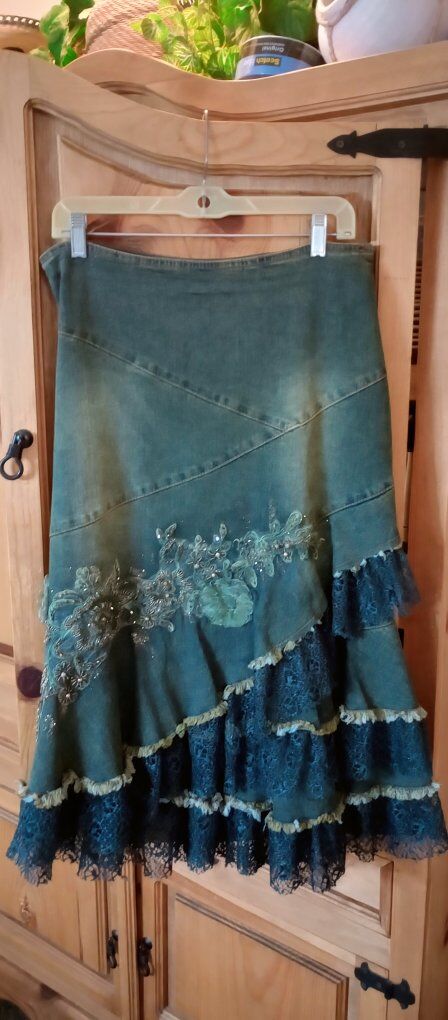 I have this really cute western style stretchy jean beaded skirt for sale. I am only asking 25.00, it is s a size Large and is new. if you would like to take a closer look at it or try it on, just text Theresa at 801-722-9163 to schedule a time to stop by and see it. I only accept cash and be sure to check out all our ads here on KSL, happy shopping!