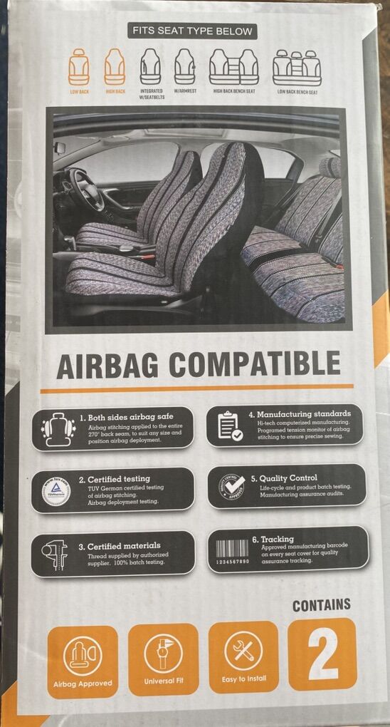 New in box West Coast Auto Baja blanket bucket seat cover for car, truck, can, SUV. Airbag compatible.