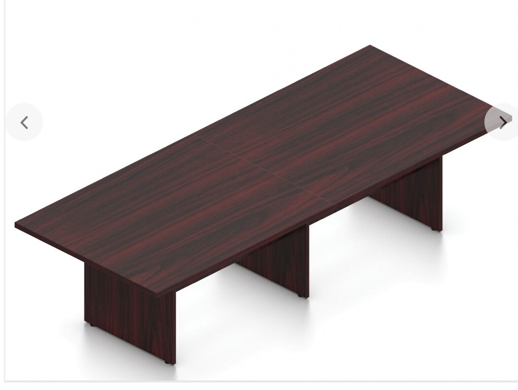 120” Rectangular Conference Table/Slab Base Top is standard in 2 pieces 1 3/8” Top Dimensions 120”w x 48”d x 29.5”h Starting at $849 Seen in the second picture with the American Mahogony finish
