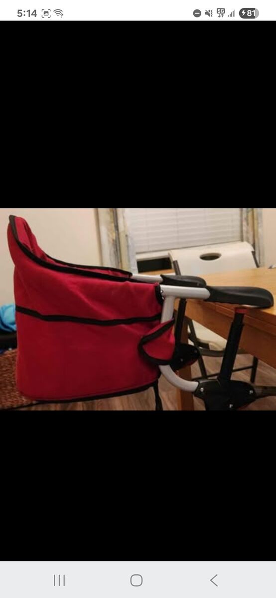 VenmoRed high chair. Great for traveling clip on tables/counters. In great condition hardly used. Been sitting in the basement storage. Hardly used. FCFS X-POSTING Smoke-free home