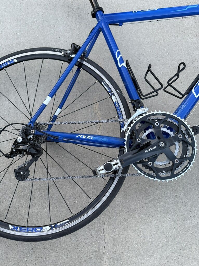 Components: • Shimano 105 group (triple crank) – shifting clean and reliable • Tektro brakes • Tires ready for replacement