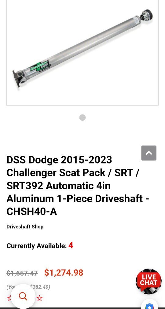 DSS Dodge 2015-2023 Challenger Scat Pack / SRT / SRT392 Automatic 4in Aluminum 1-Piece Driveshaft - CHSH40-A Drag Racing Wheels strives to provide excellent customer service and the best deals on the DSS Dodge 2015-2023 Challenger Scat Pack / SRT / SRT392 Automatic 4in Aluminum 1-Piece Driveshaft - CHSH40-At.
