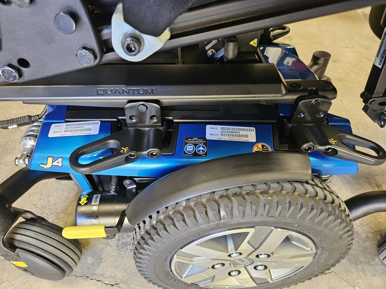 VenmoThis chair belonged to my mother and we no longer have a use for it. She had it while living in assisted living and it saw very little use. It is still in excellent condition and includes the manuals and charger. Features & Details: Model: Quantum J4 Power Wheelchair Drive Configuration: Mid-wheel drive for tight turning radius (21") Drive Wheels: 14" flat-free tires Caster Wheels: 6" solid (front and rear) Ground Clearance: 2.9" at battery tray Speed: Up to 5 mph Seating Sizes: 16–22" wide and 16–22" deep (adjustable in 2" increments) Seat-to-Floor Heights: 17.25–19.25" Controller: NE+ rehab electronics with easy-to-read display and soft-touch buttons Battery: NF-22 (38 lbs. each) with 8A off-board charger included Weight Capacity: Up to 300 lbs. Condition: Open-box, lightly used, works perfectly