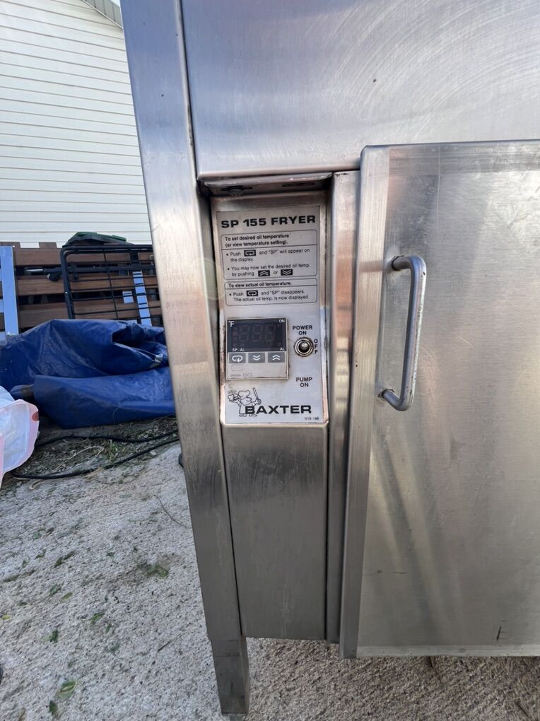 VenmoBaxter commercial donut fryer, natural gas-powered model SPI 55G-M1826 heavy-duty, stainless steel units designed for high-volume donut production in bakeries, donut shops, and other food service environments. Offers accepted.