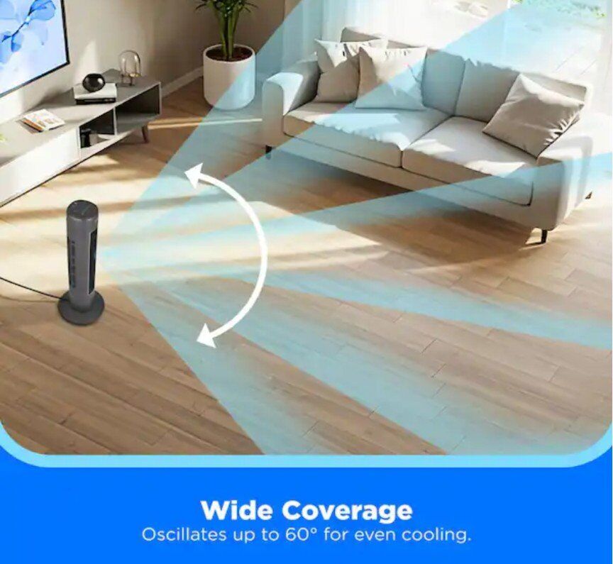 3-Speed Tower Fan: Choose from low, medium, and high fan speeds for personalized cooling comfort 60° Oscillating Fan: Widespread oscillation function ensures full-room airflow coverage.