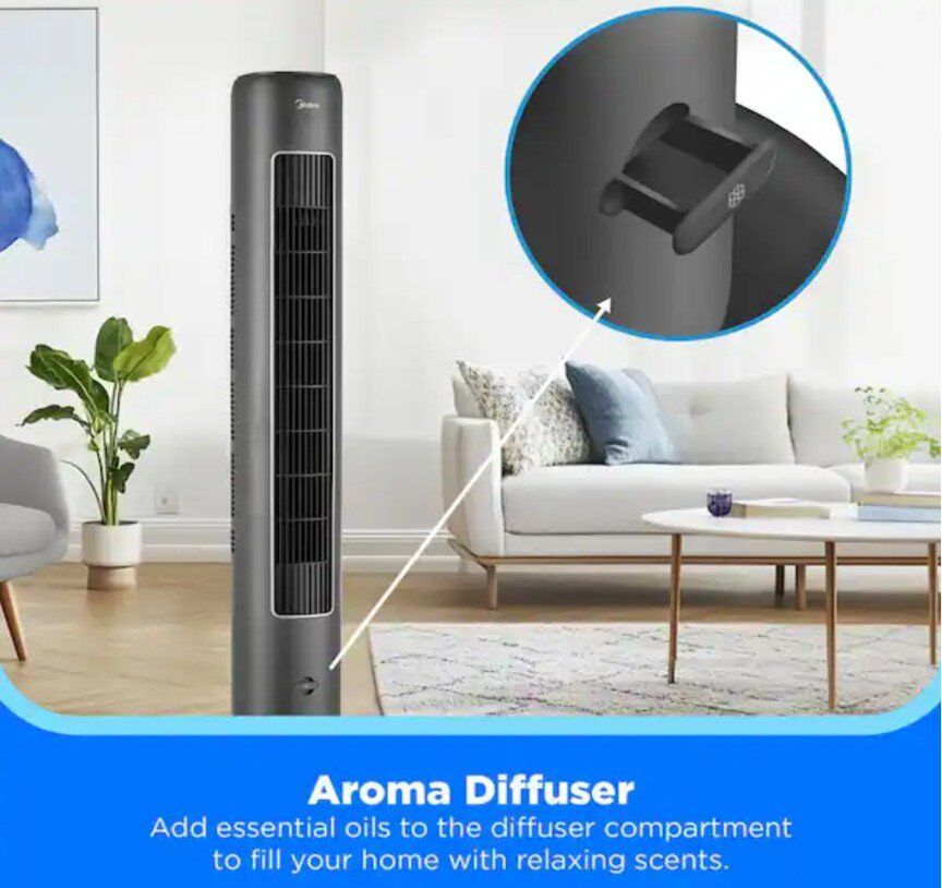 Midea 42 In. Smart Tower Fan: A powerful Wi-Fi-enabled cooling fan for large rooms and whole-room circulation Smart control options: control your fan from anywhere via the smarthome app, or use voice control with alexa and google assistant.
