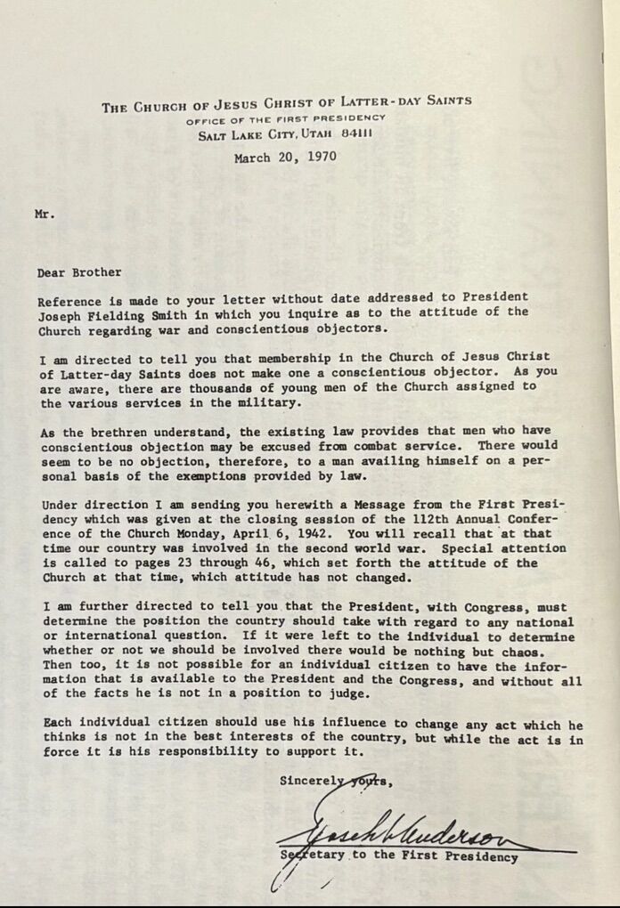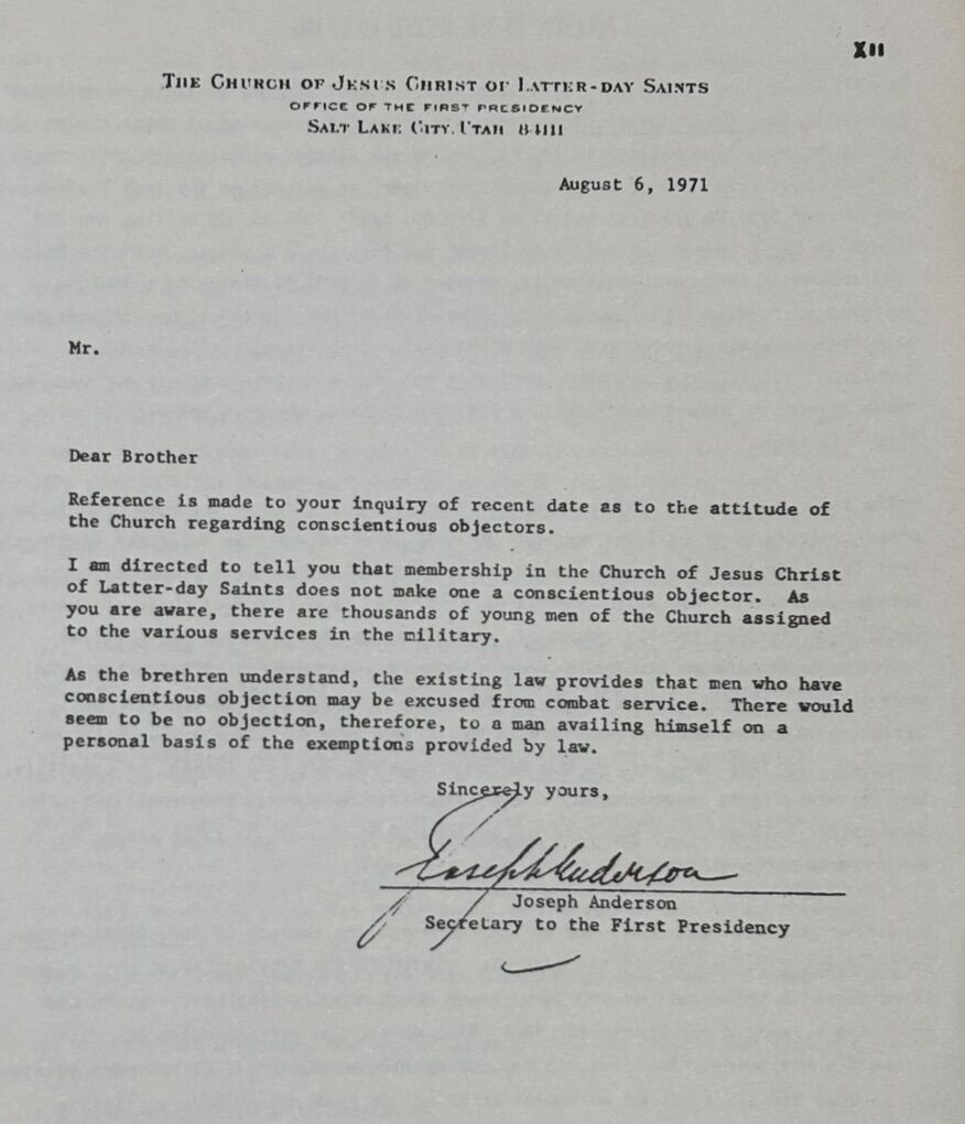 A compilation of sources presenting historical evidence making the case for Conscientious Objection as a member of the Church of Jesus Christ of Latter Day Saints, a.k.a. Mormons.